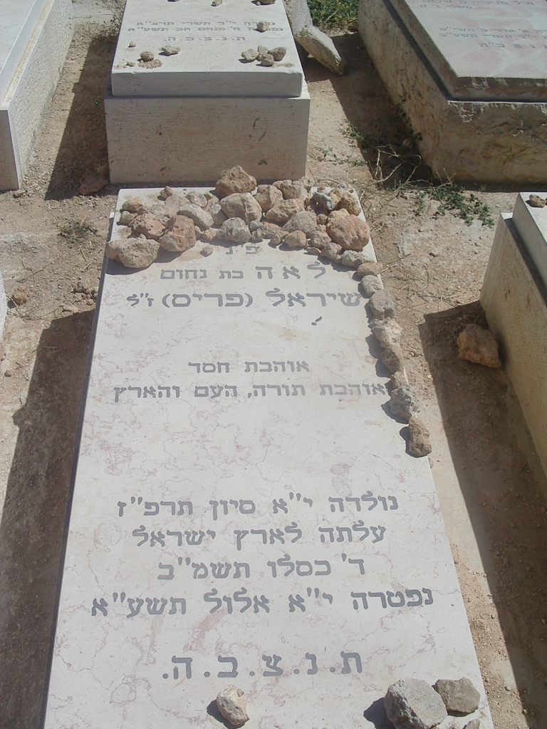 Born 11 Sivan 5687 Made aliyah to Eretz Israel 4 Kislev 5742 Died 11 Elul 5771
