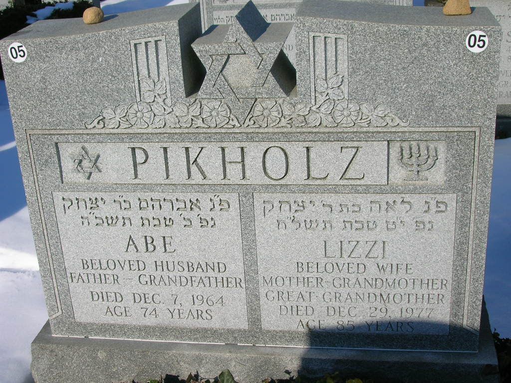 LEAH bat R' Yitzhak Died 19 Teveth 5738 LIZZI Beloved wife Mother - grandmother Great-grandmother Died Dec. 29, 1977 Age 85 years TNZB"H (May her soul be bound in life) |