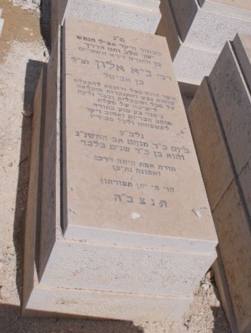 Here lies buried The dear and noble young man Of honest heart and simple ways A G-d-fearing son of Torah R' GUY ALLON ztz"l