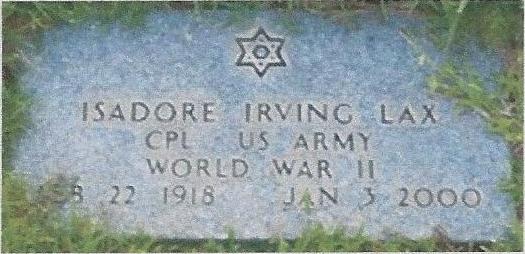 ISADORE IRVING LAX Corporal US Army World War II Feb. 22, 1918 - Jan 3, 2000