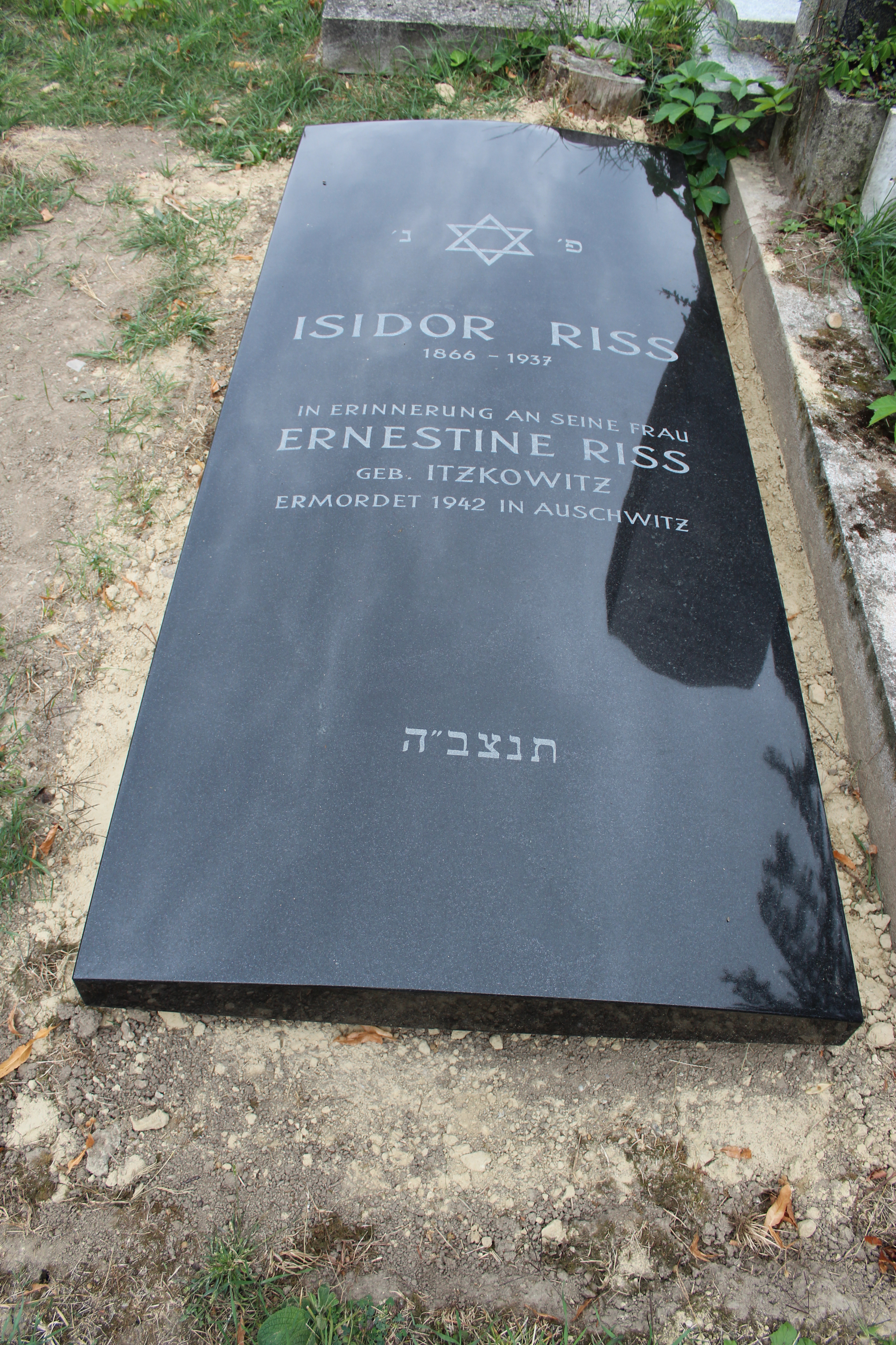 In memory of his wife ERNESTINE RISS nee ITZKOWITZ Murdered 1942 in Auschwitz