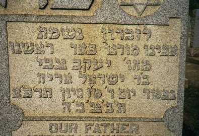 Our father, Our Teacher, Our Glory YAAKOV ZVI ben R' Israel Aryeh Died Wednesday, 16 Sivan 5681 TNZB"H (May his soul be bound in life) |