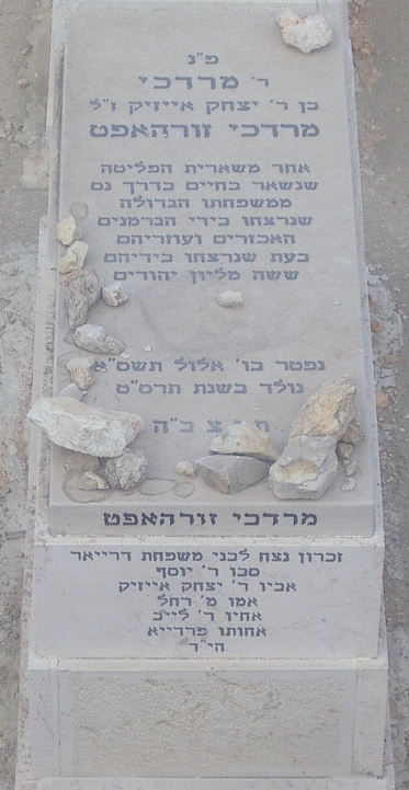 Grandfather R' Josef Father R' Yitzhak Isak Mother M' Rachel Brother R' Leib Sister Freida Hy"d |