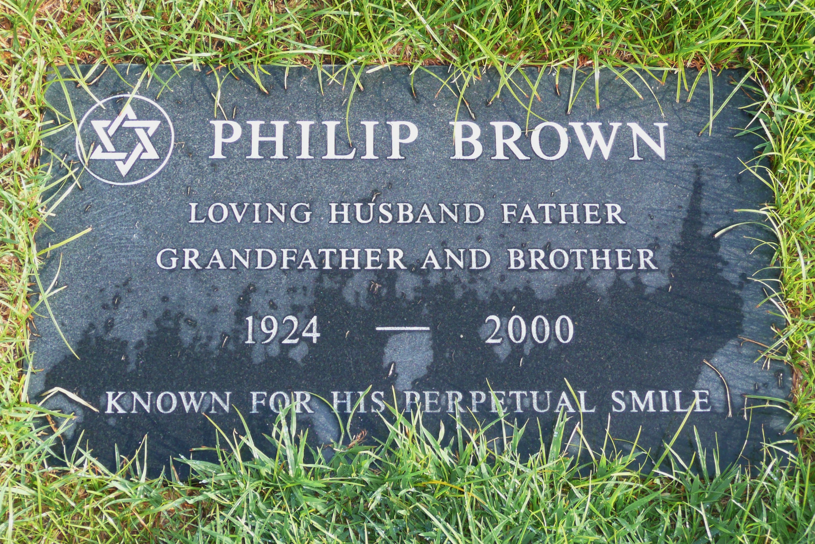 PHILIP BROWN Loving husband and father Grandfather and brother 1924 - 2000 Known for his perpetual smile
