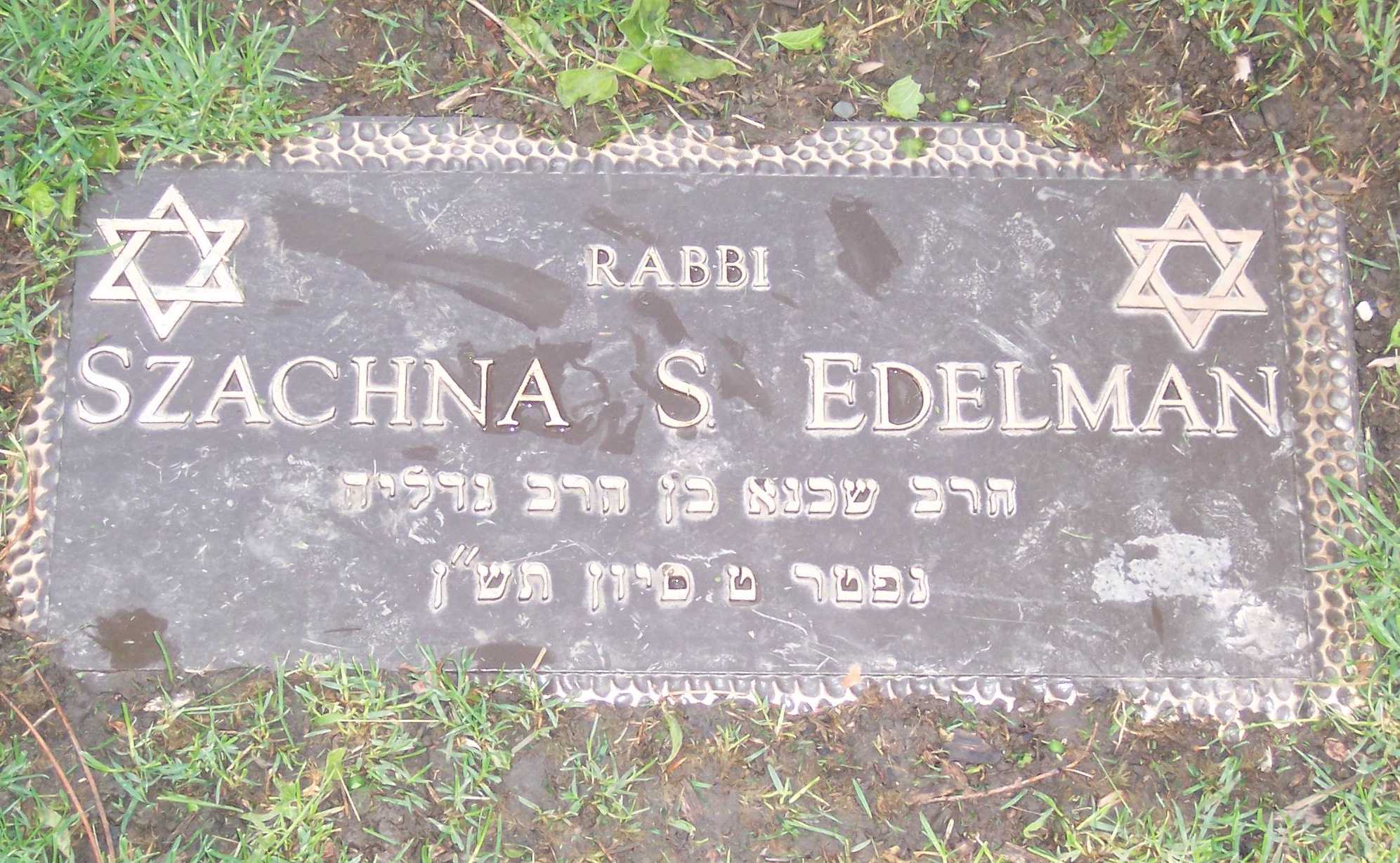 Rabbi SZACHNA S. EDELMAN Rabbi Szachna ben Rabbi Gedalia Died 19 Sivan 5750