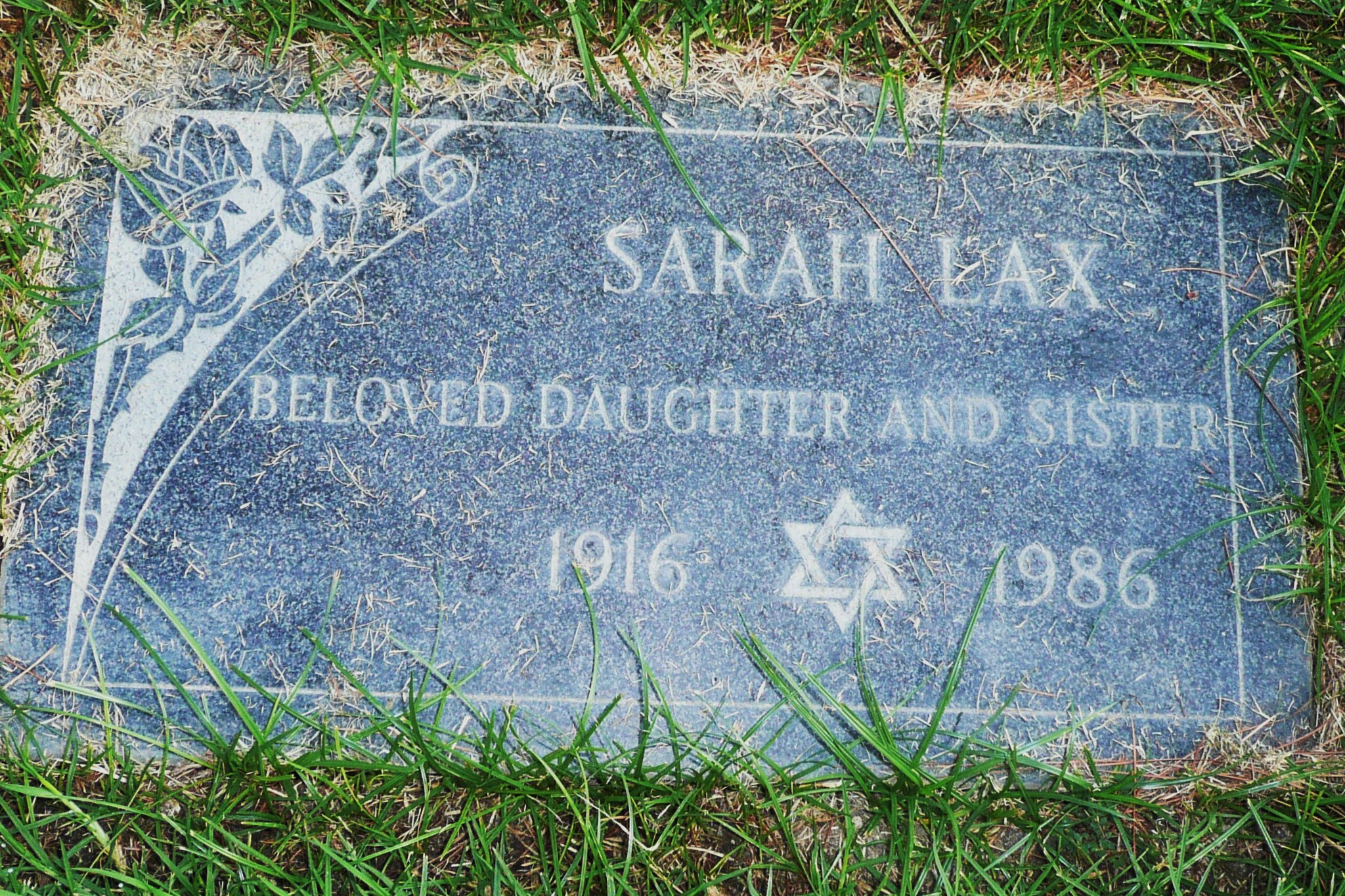 SARAH LAX Beloved daughter and sister 1916 - 1986