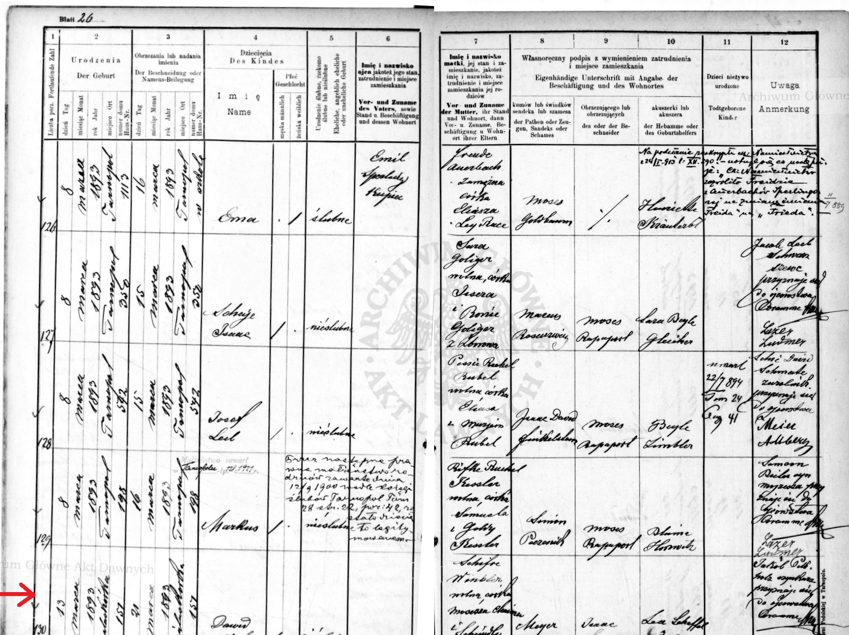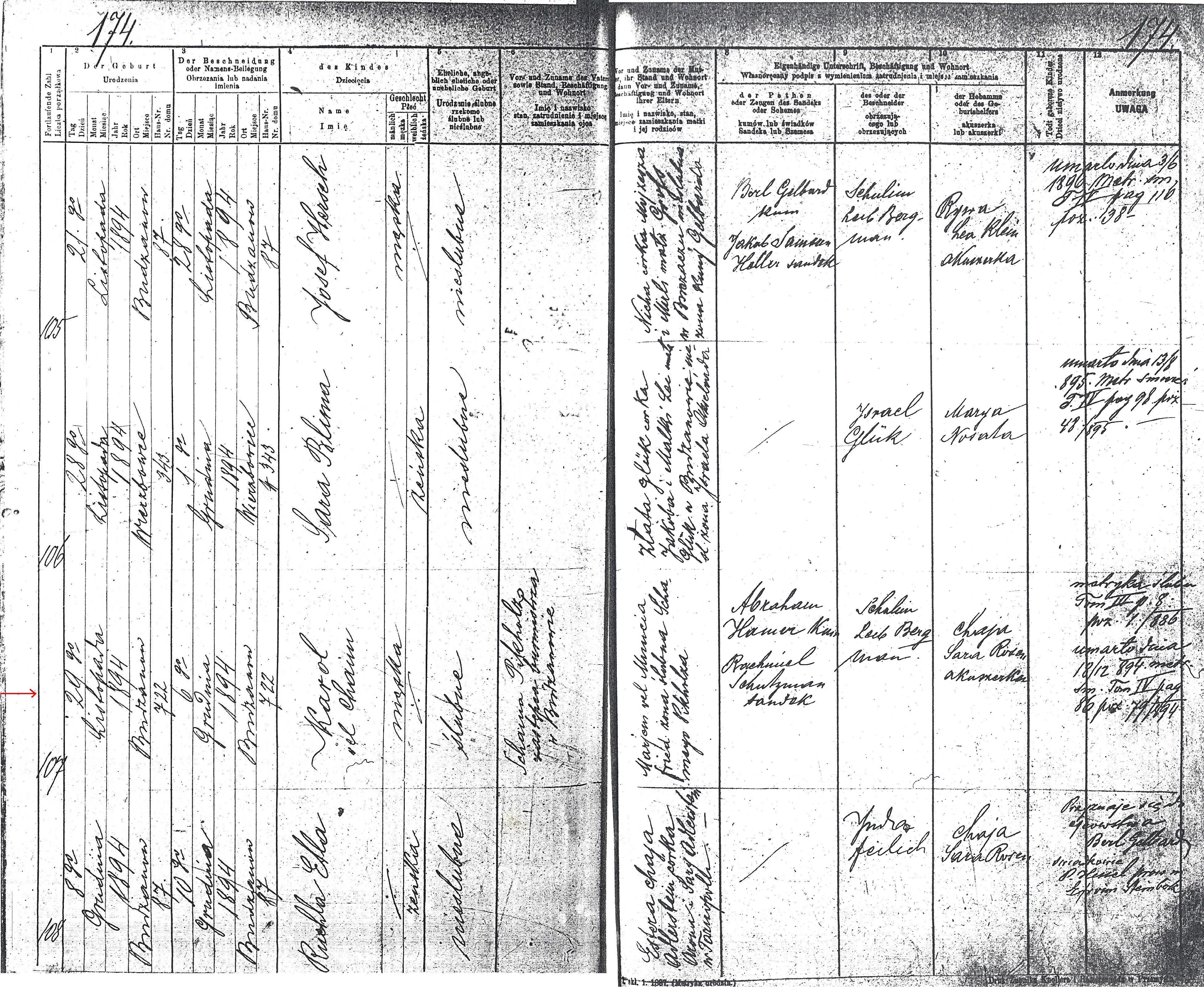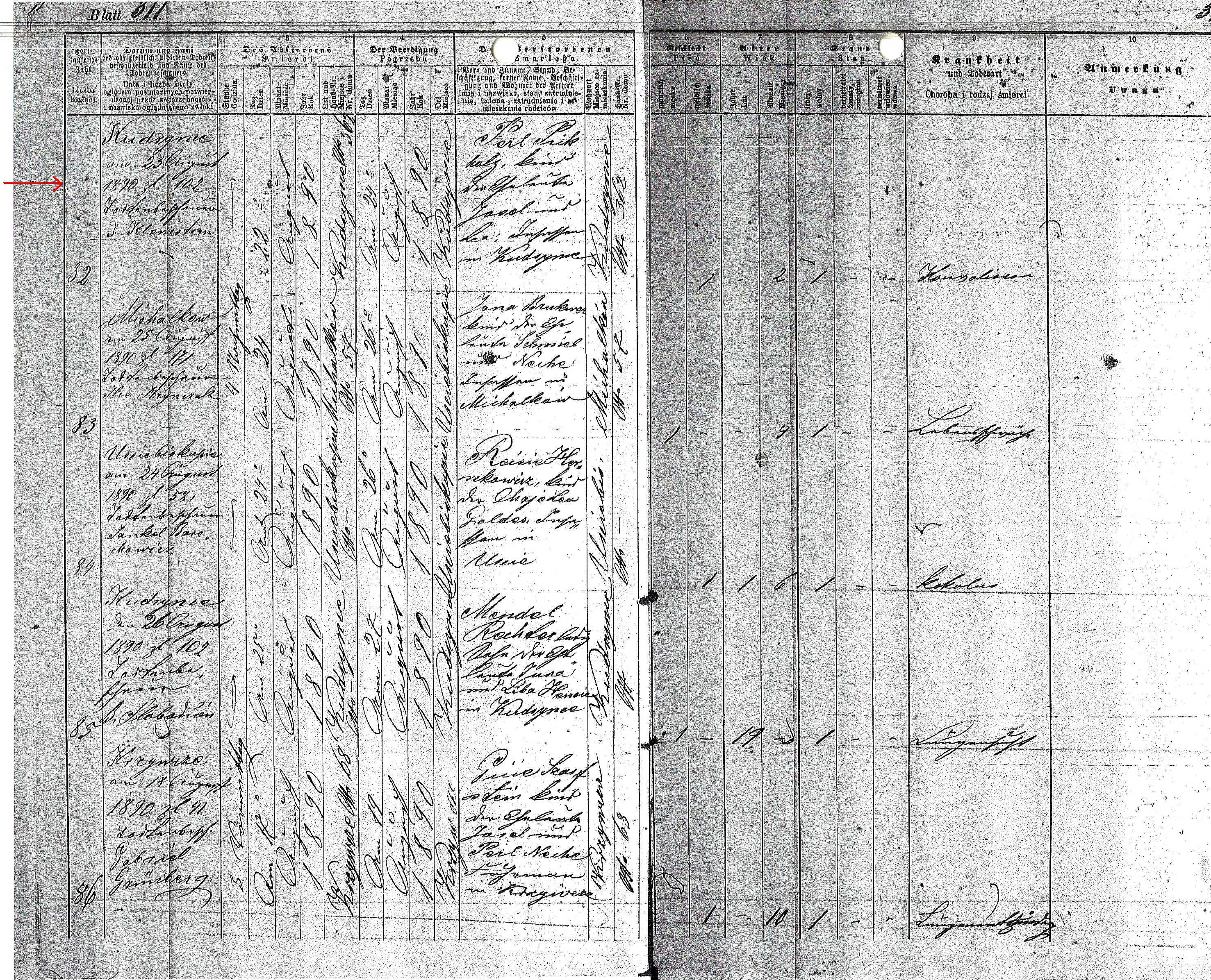 22 | 15 May 1889 | Berezow Wielkie | Markus | Josef | Sussel Gruberg | Dawid Eisik & Chaje | ROSA | Maybe died in Vienna, 1915 (see record 6 below) | |||