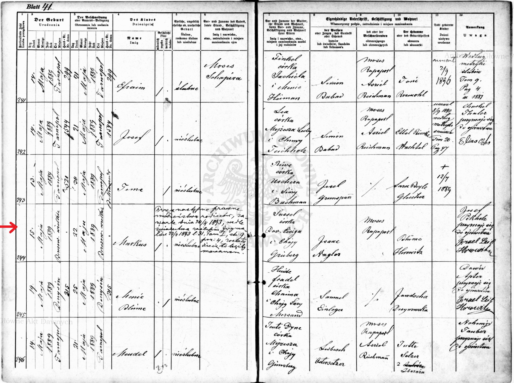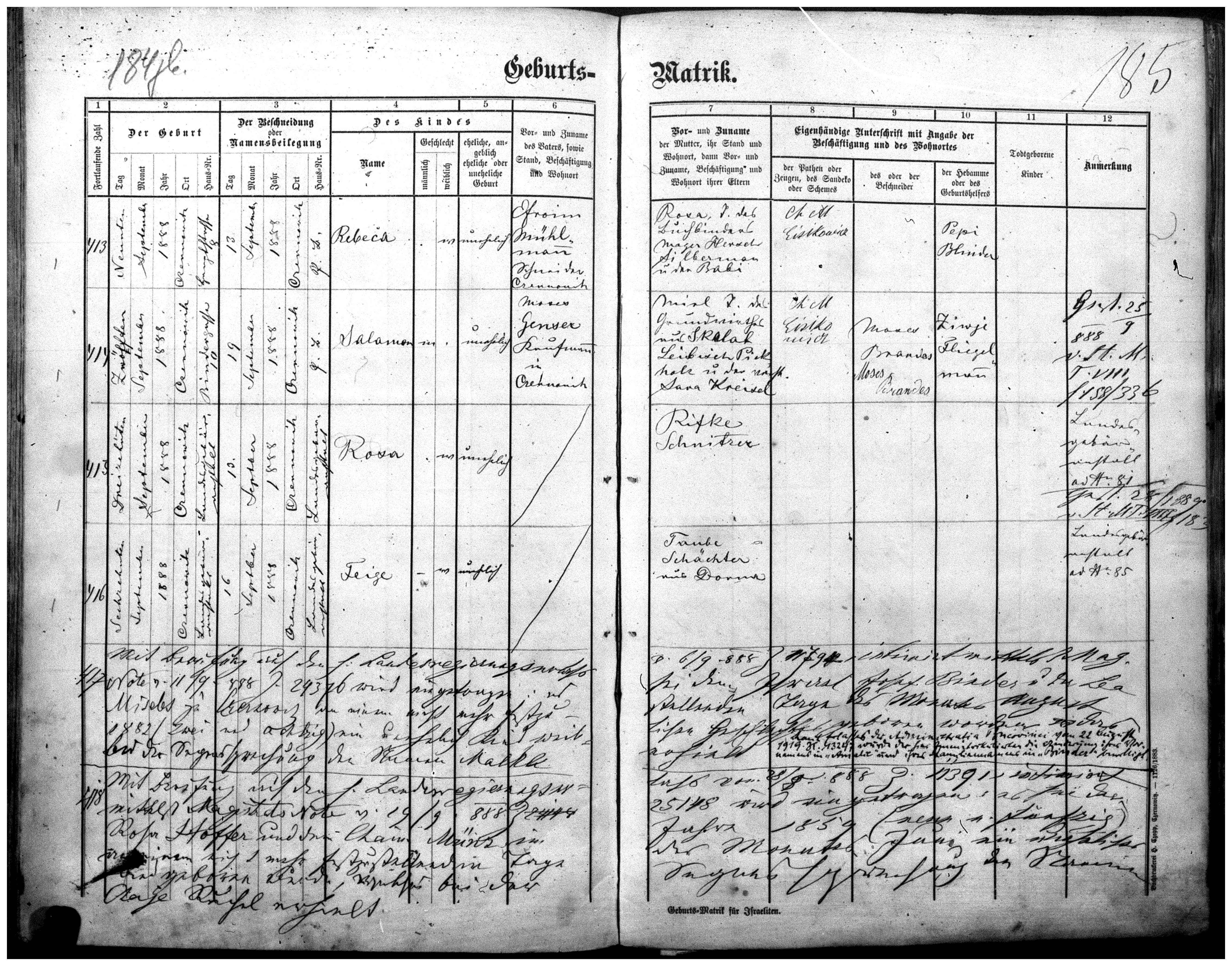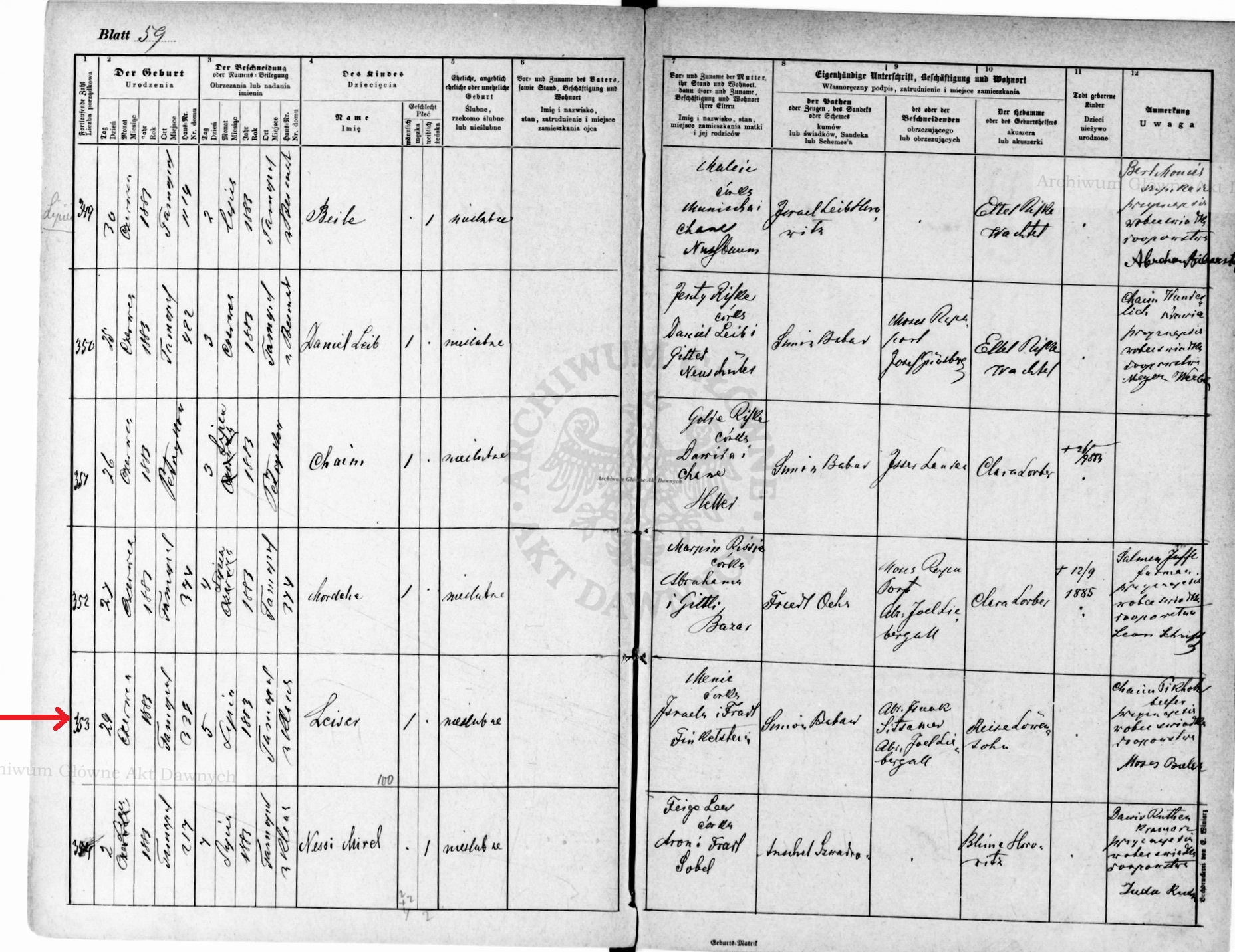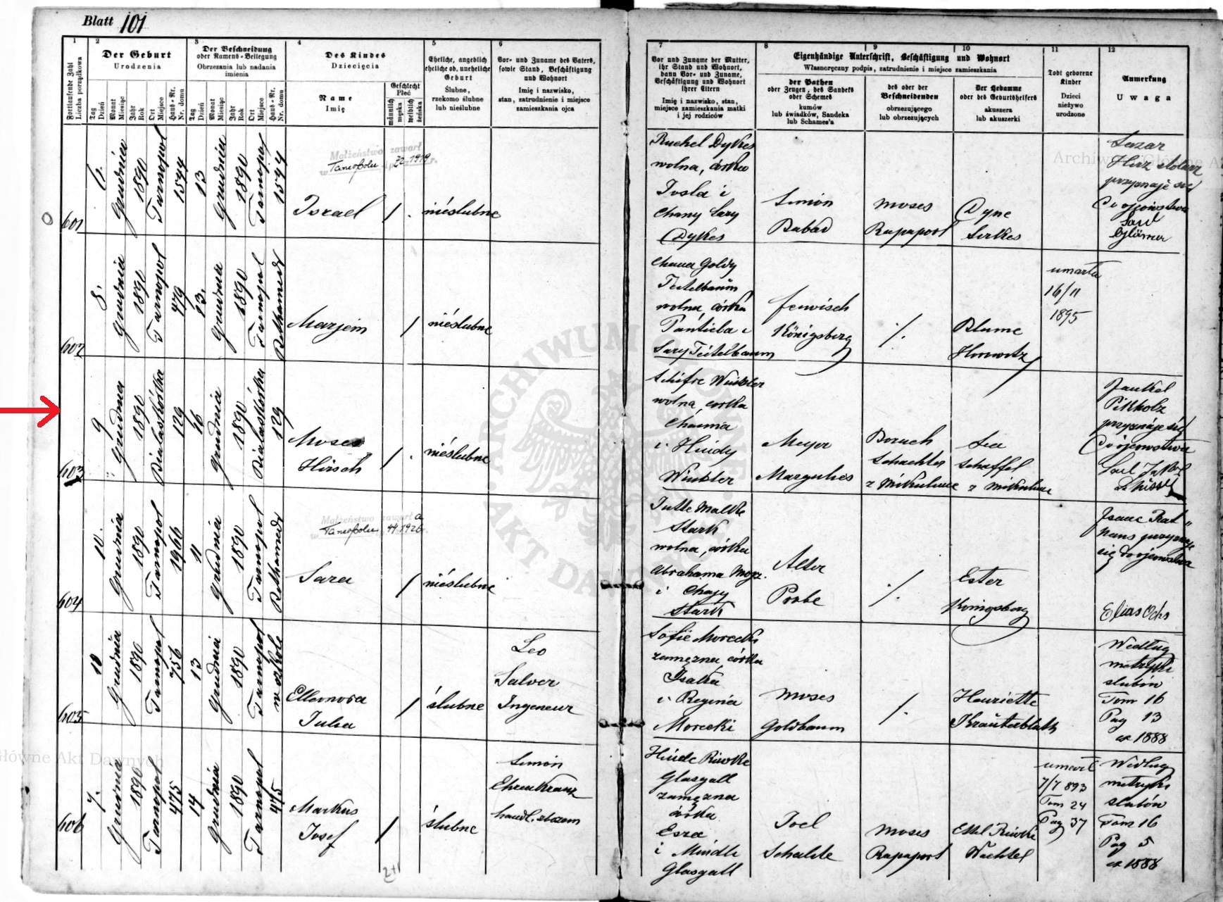 22 | 15 May 1889 | Berezow Wielkie | Markus | Josef | Sussel Gruberg | Dawid Eisik & Chaje | ROSA | Maybe died in Vienna, 1915 (see record 6 below) | |||