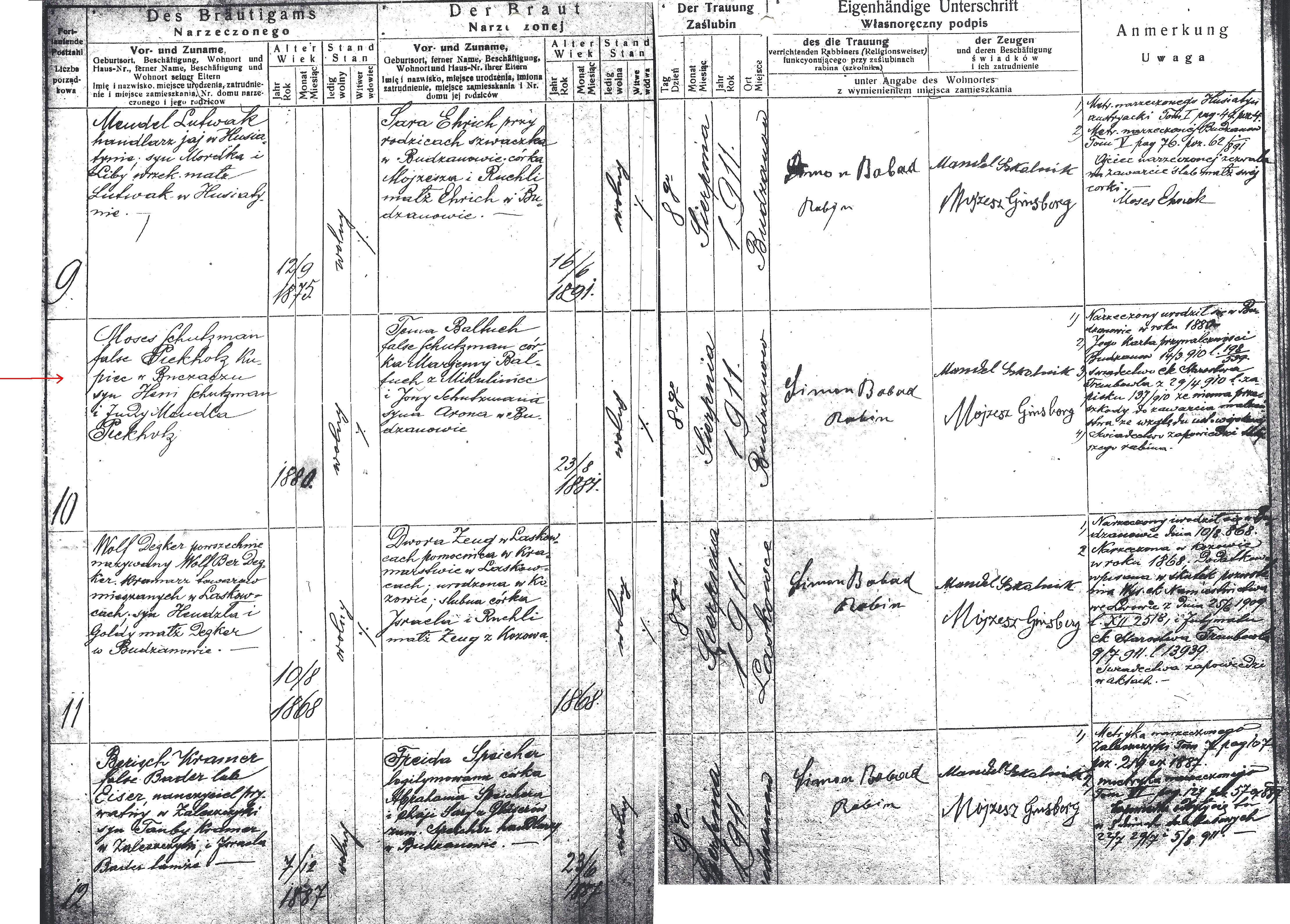 10 | 5 Jun 1942 | Jozef Kornweitz | 15 Oct 1911 | Berl Pickholz | Zlaty Kornweitz | Kozowa | May be RITA |
