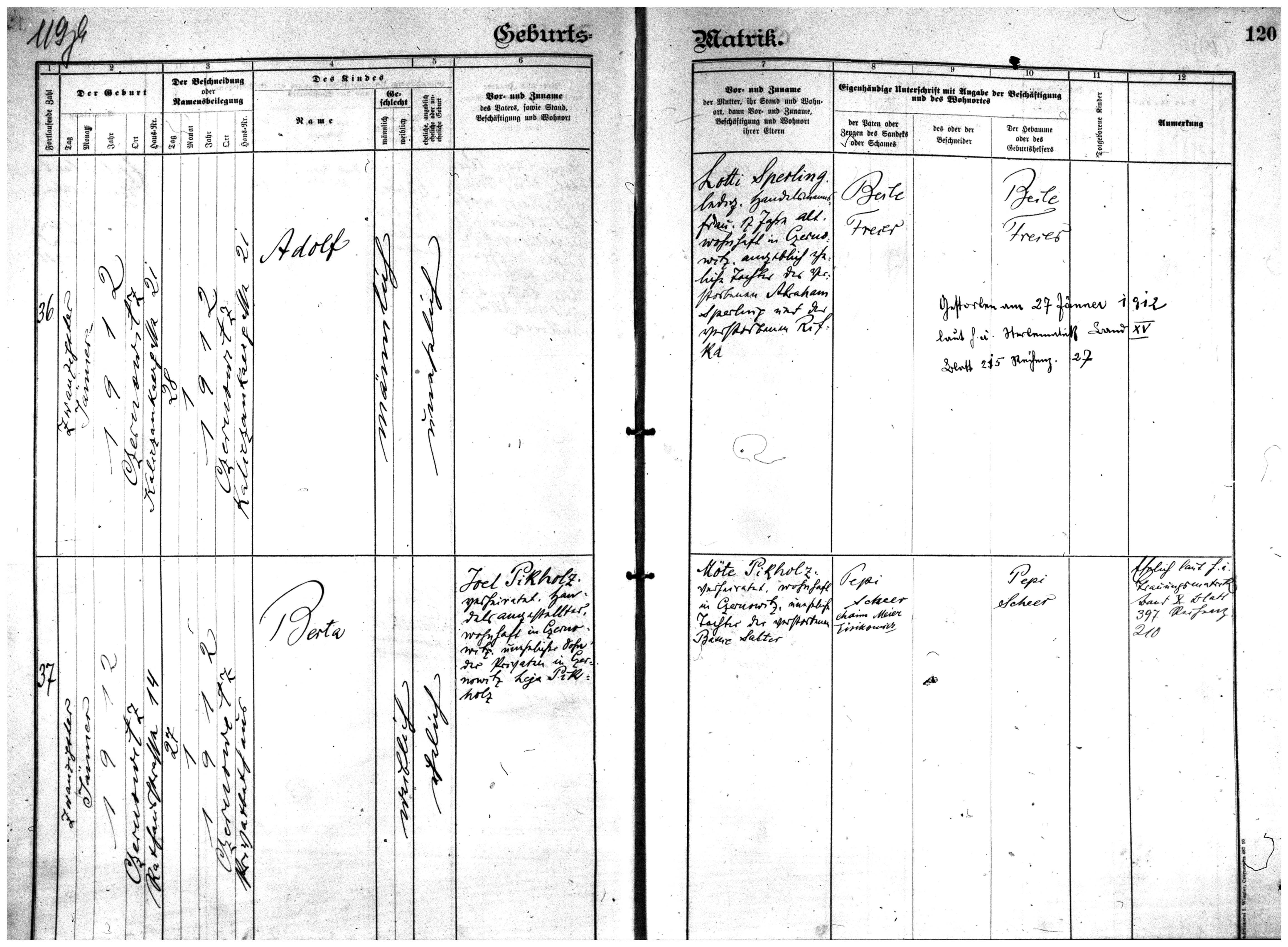 5 | 20 Jan 1912 | Berta | Joel Pikholz | Mote Salter | Bassie Salter | Czernovitz | DORA |