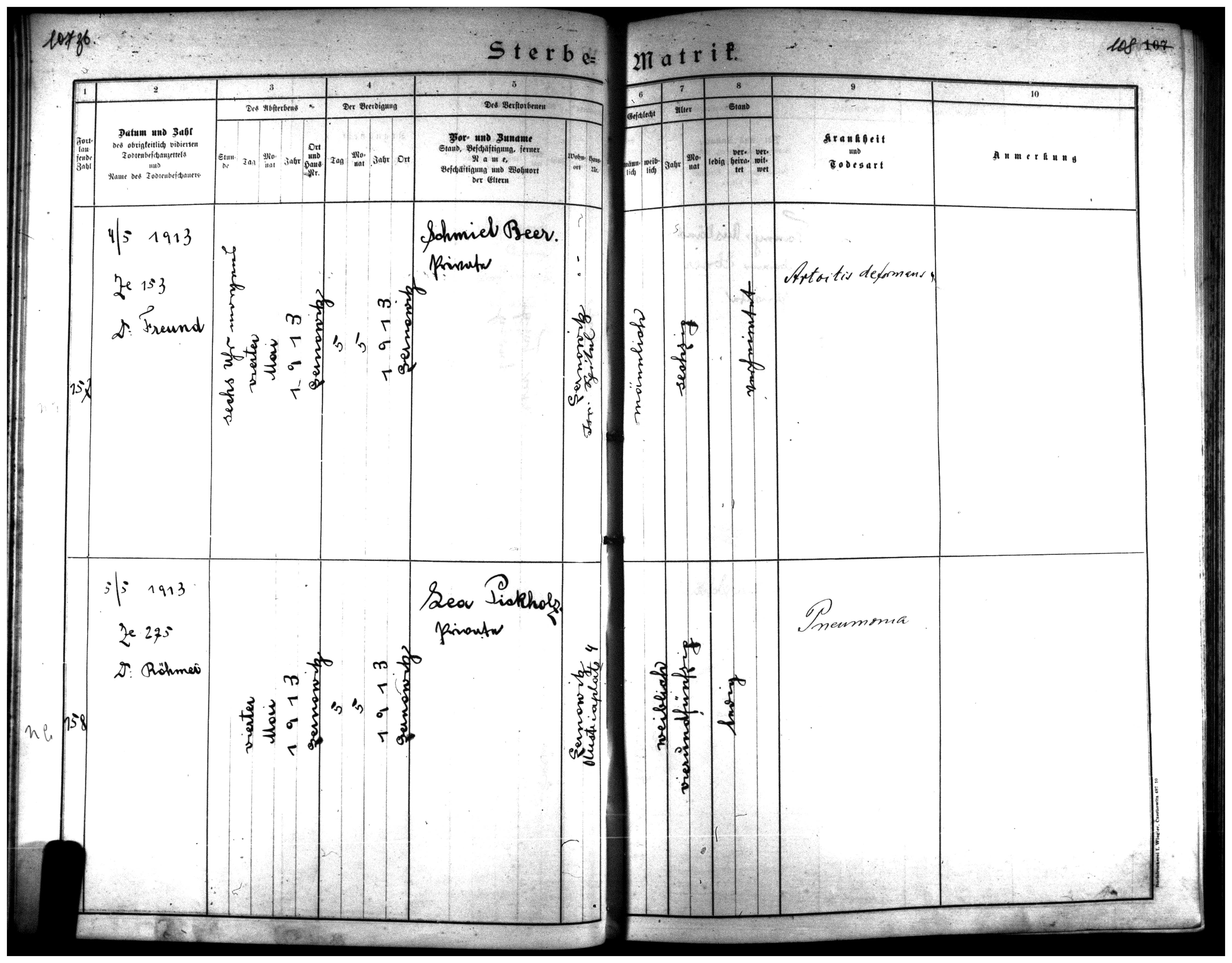5 May 1913 | Lea Pikholz | DORA | Widow of Berl Pfeffer |