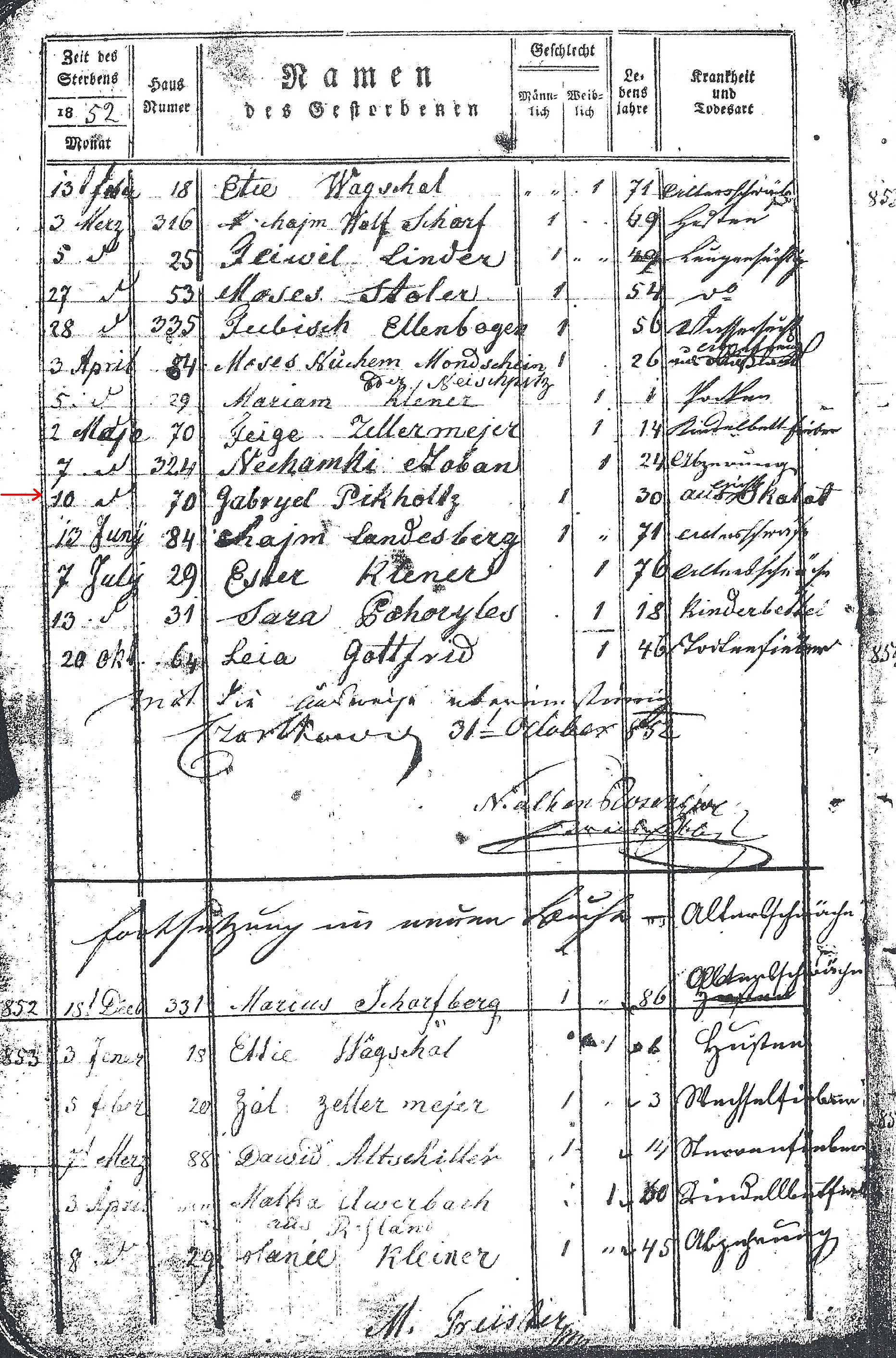 20 | 6 Jan 1854 | 395 | Jankel Pikholz | Marcus | Ruchel | Joel | May be brother of Henie in record 1 | ||||