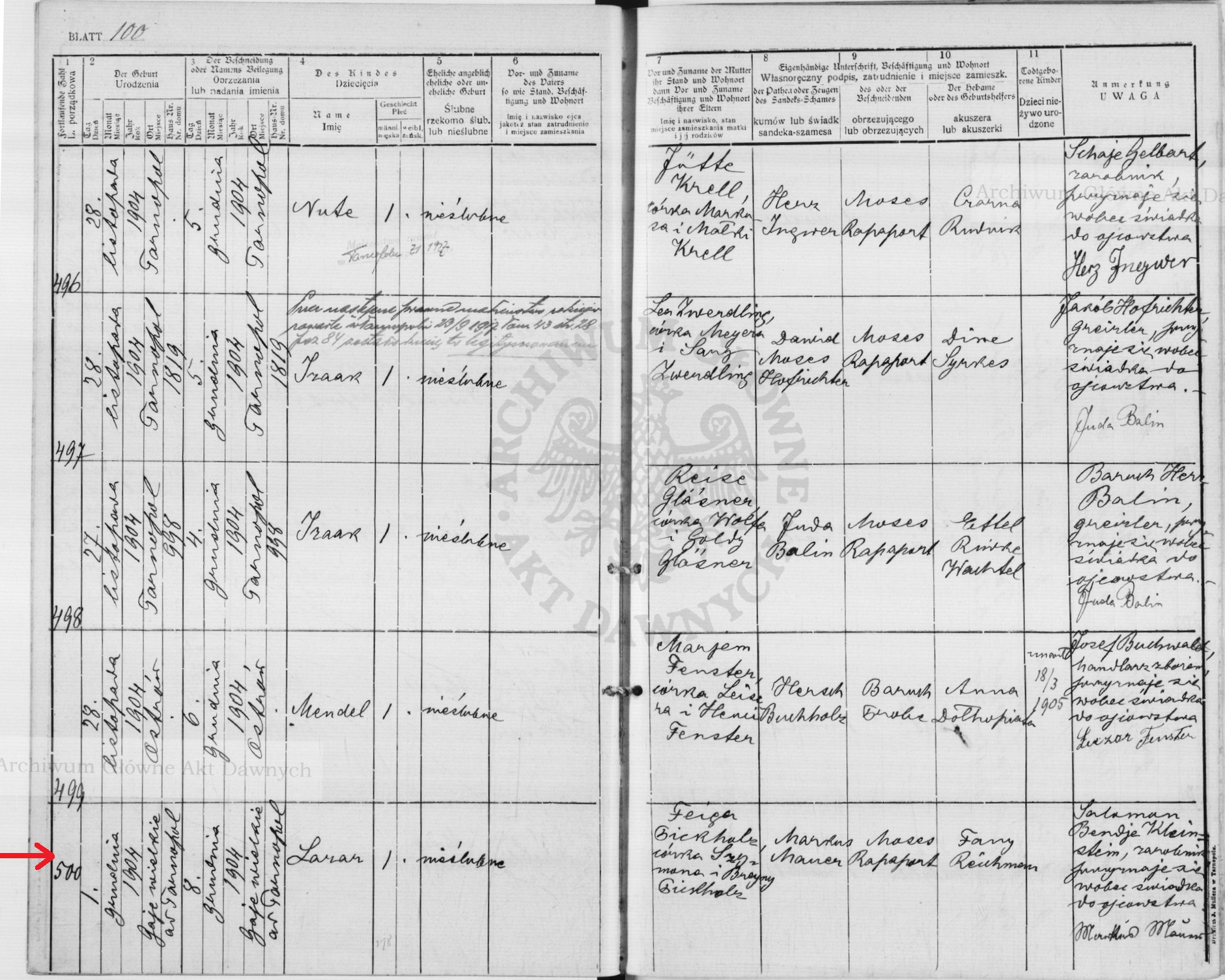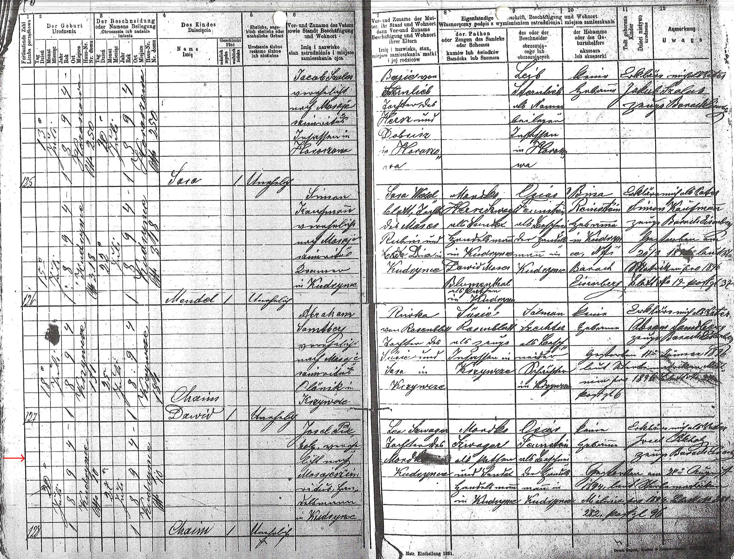 TARNORUDA BIRTH RECORDS (on Grzmaylow marriage film)