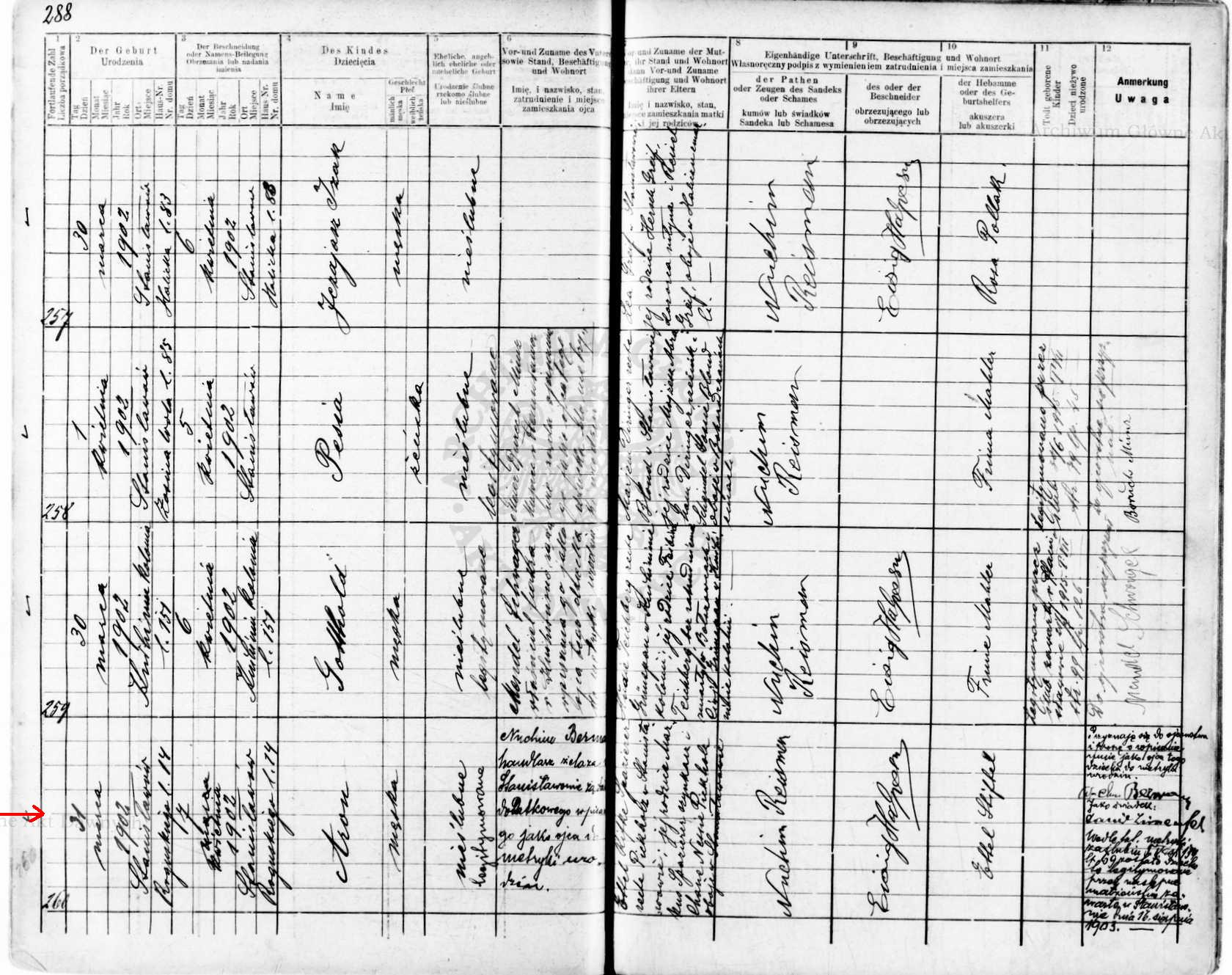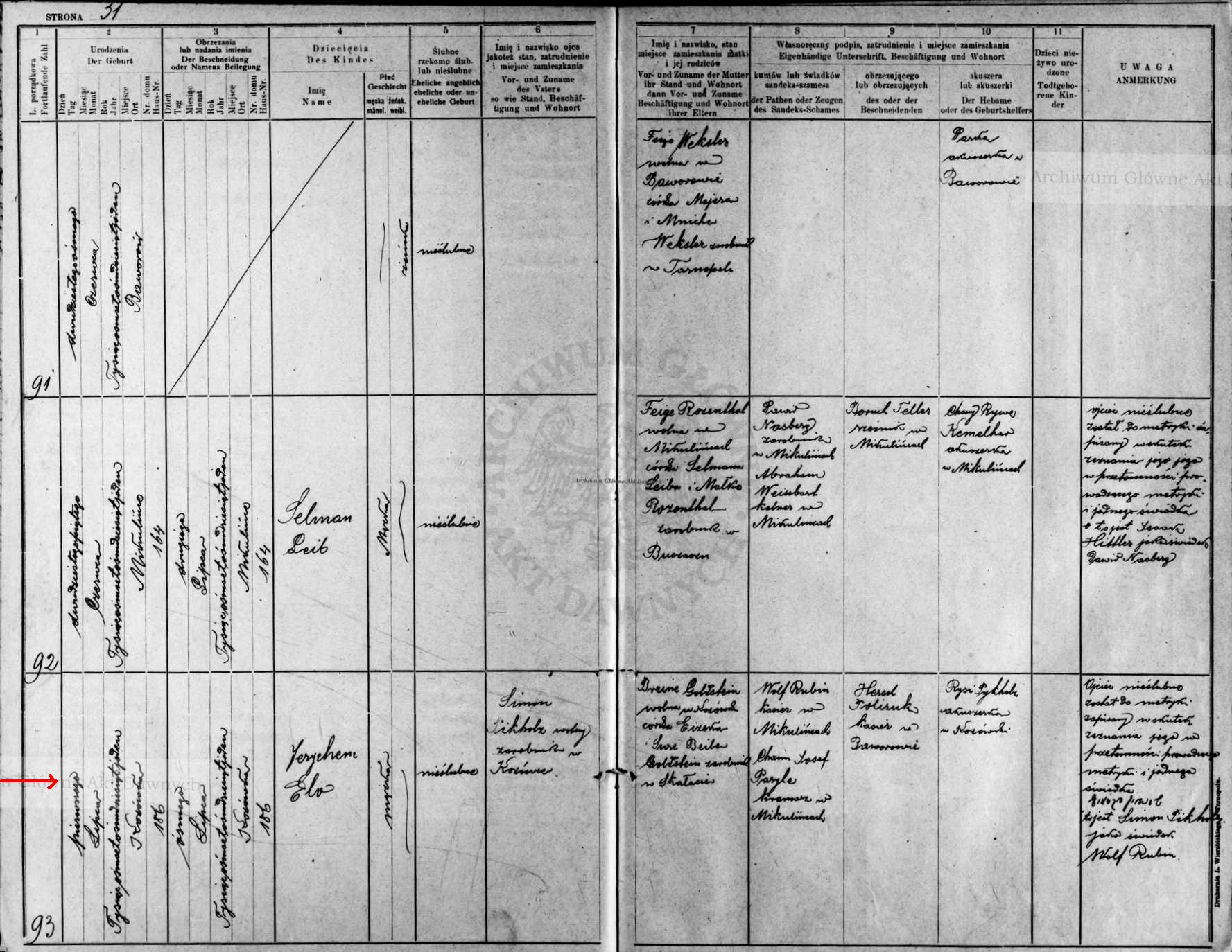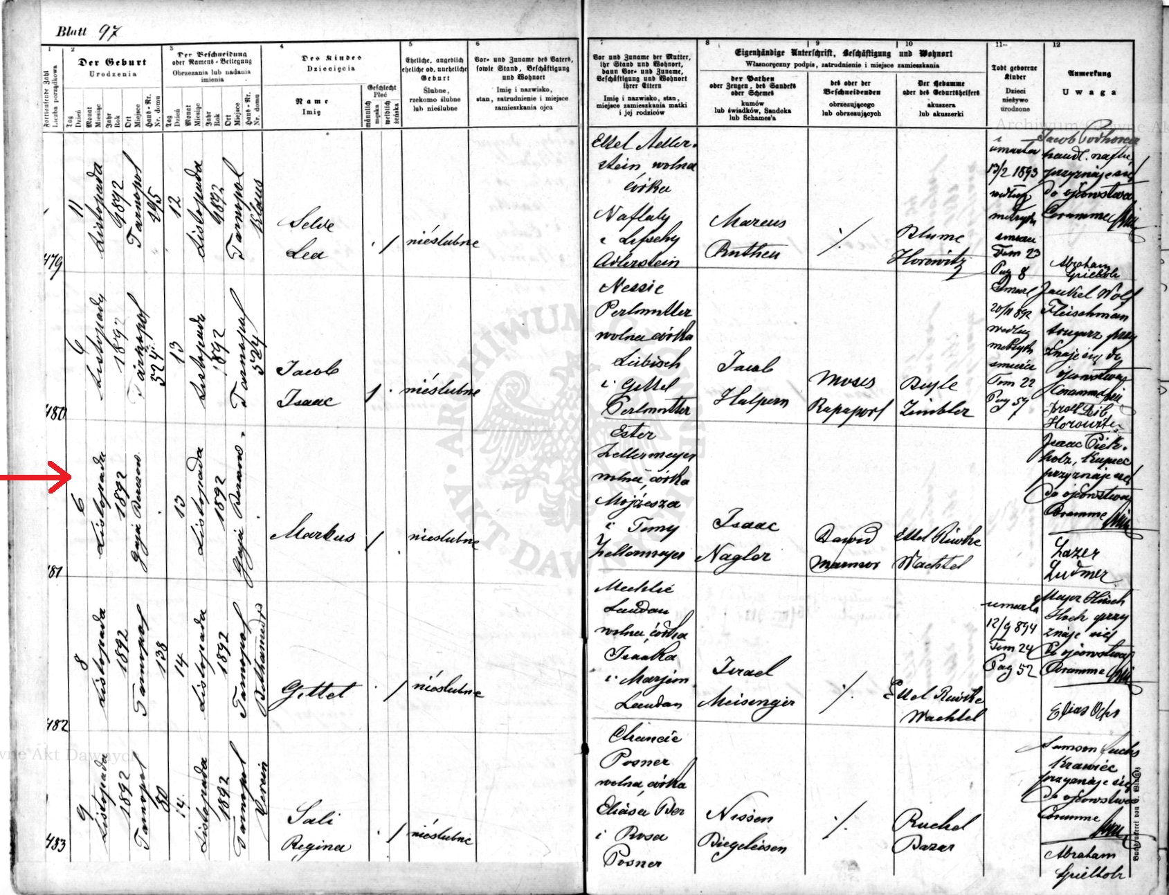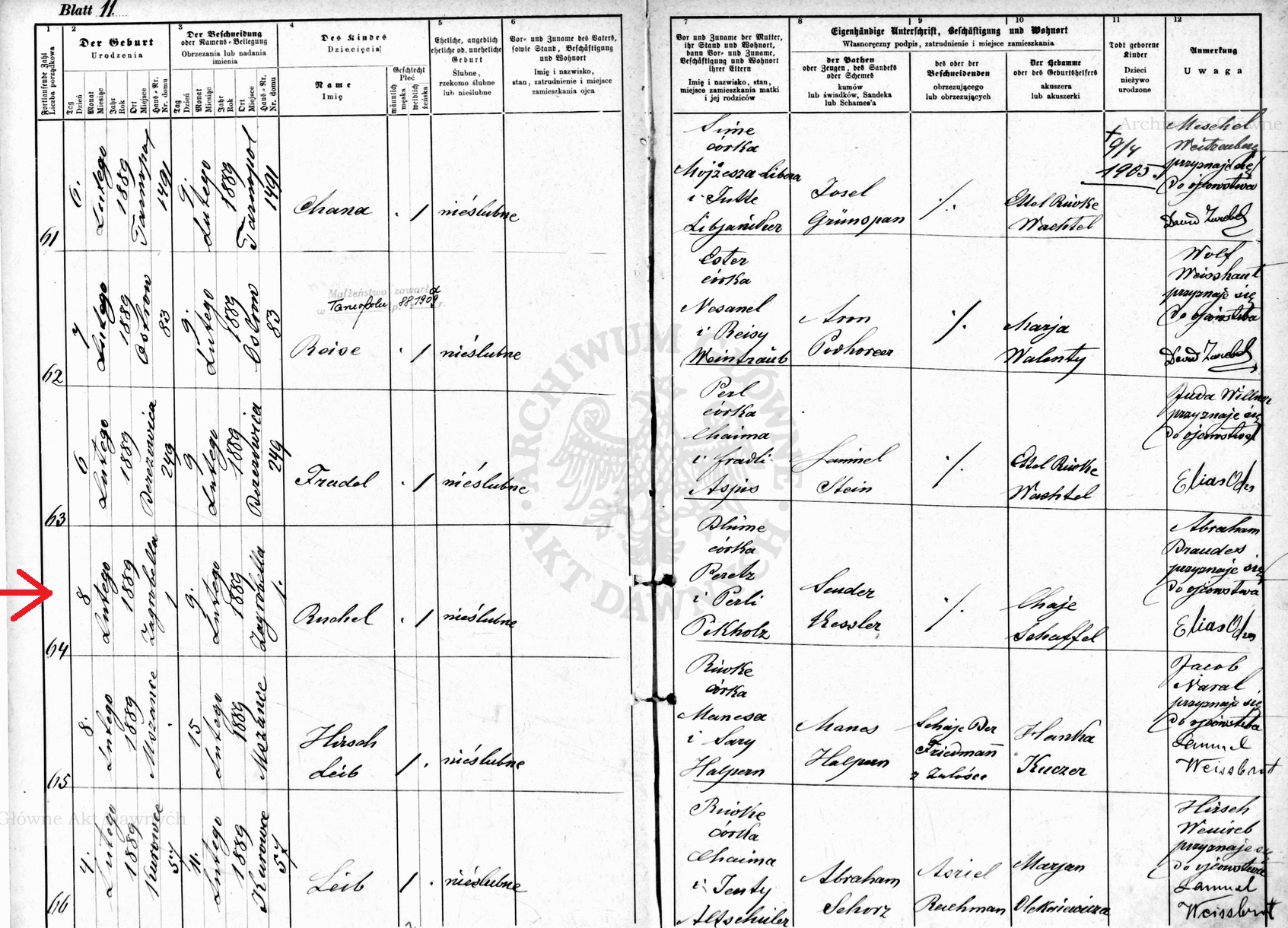 28 Dec 1892 | 31 1/4 | Chanzie Bermann | Nuchim | Ettel Spacierer | Markus & Chaje Nesia | IRENE | Mother's mother