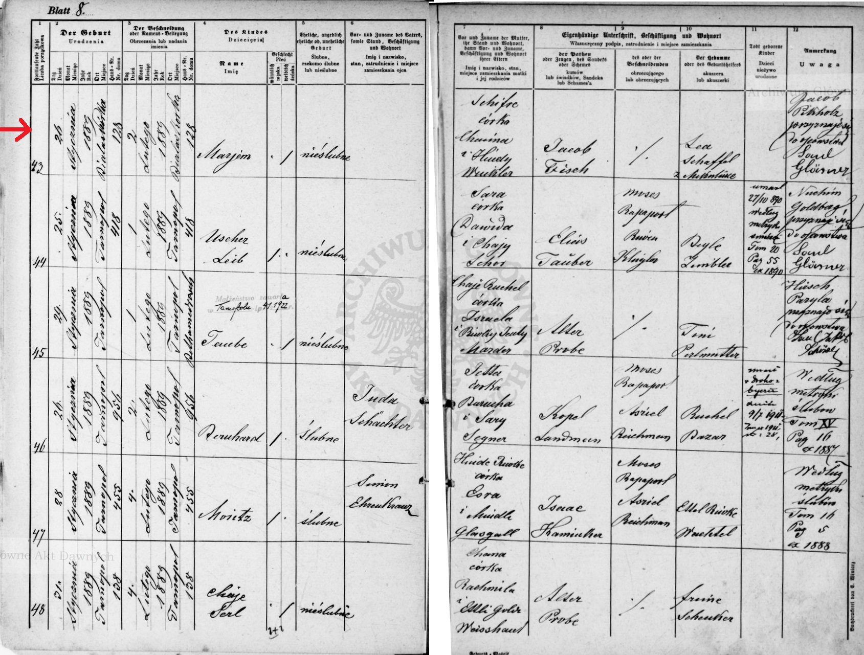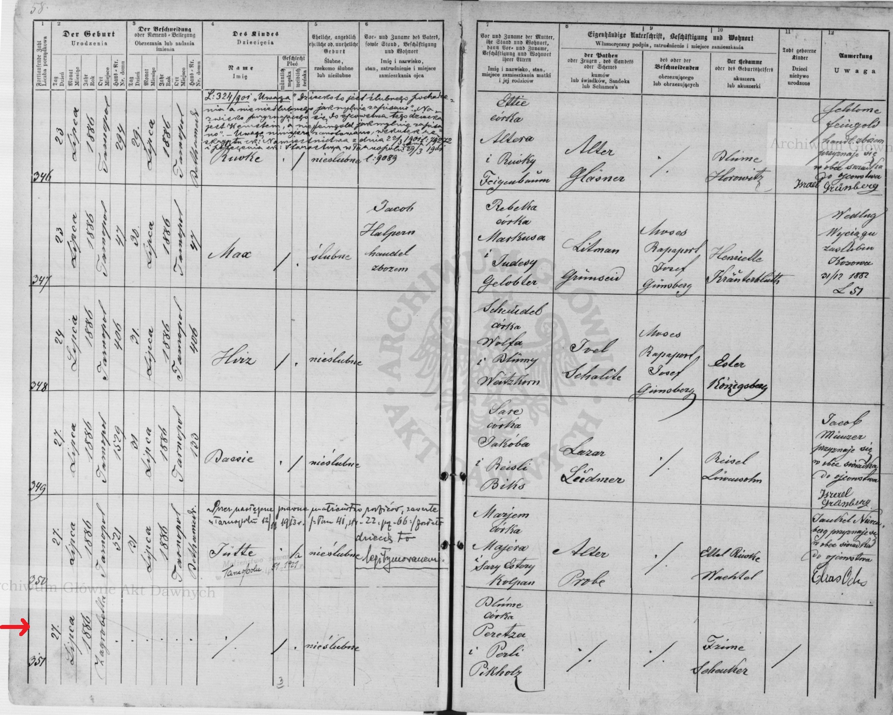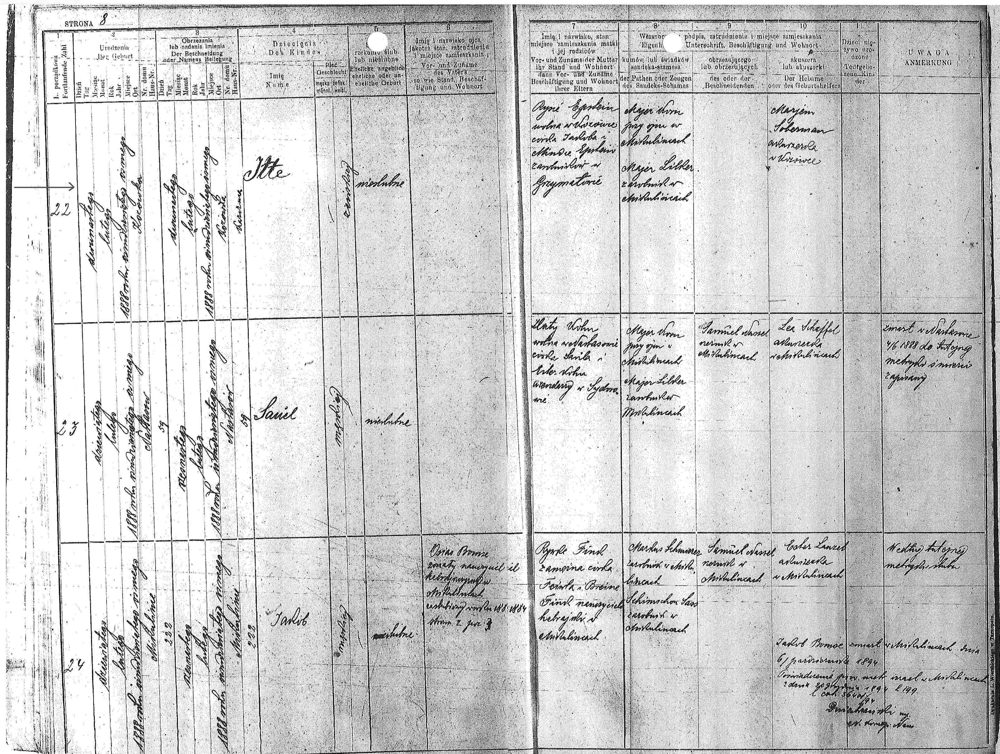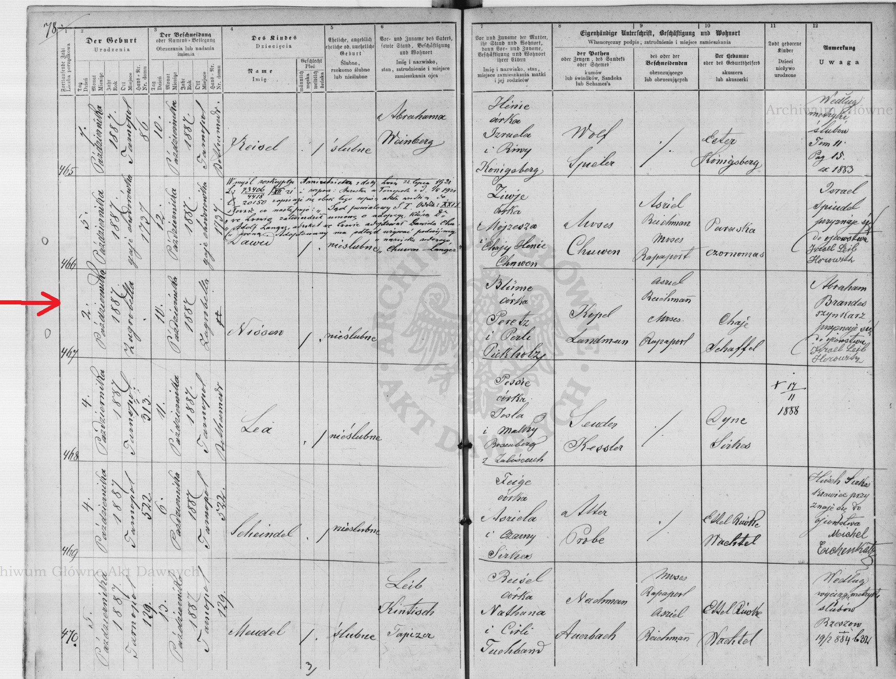 23 | 26 Jan 1889 | Bialaskorka 128 | Marjem | Jacob | Schifre Winkler | Chaim & Huda | LAOR | ||||