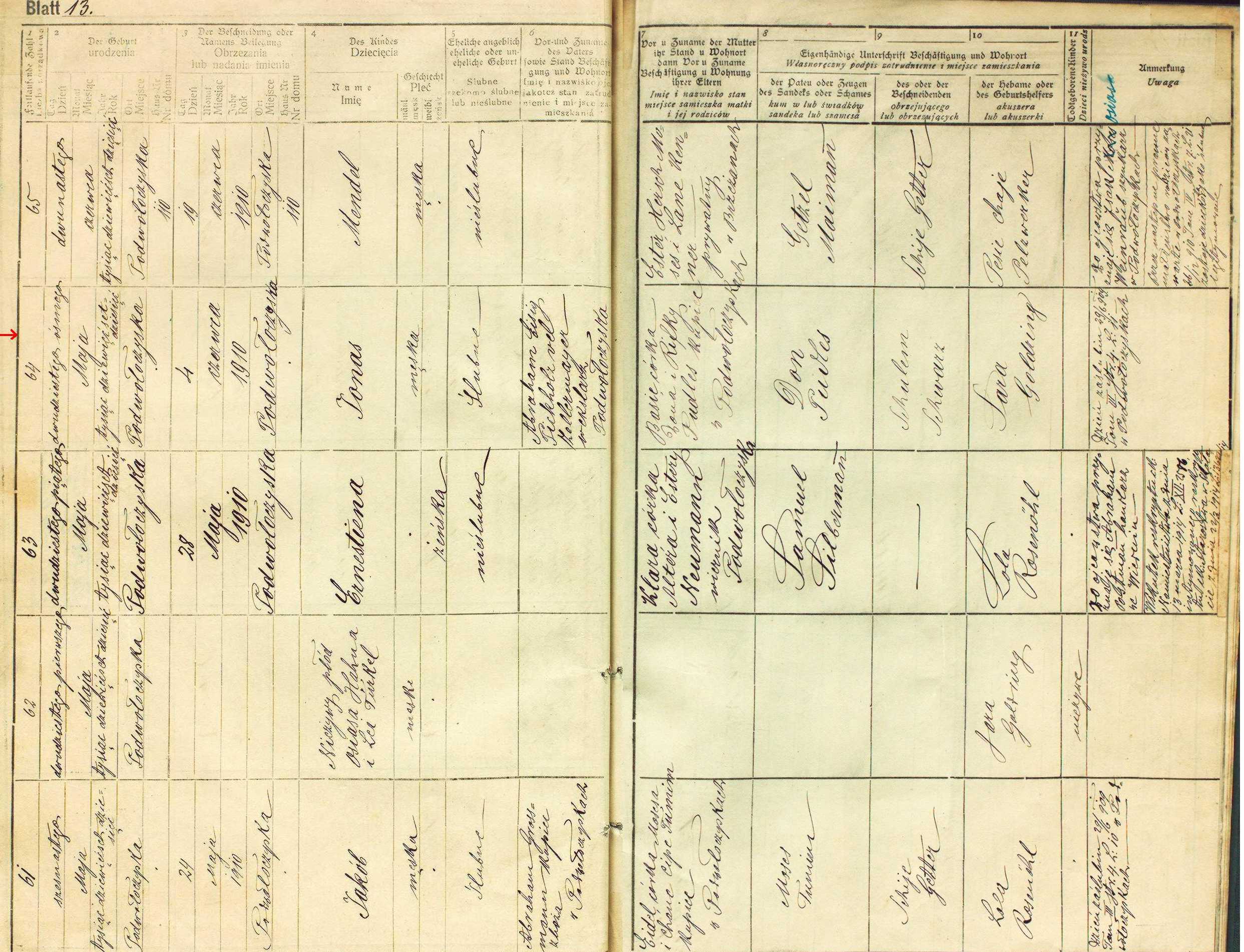18 Feb 1911 | Gaje Wielkie | Dawid Eisig Lippman | Salomon | Gittel Pickholz | Josek & Susel | ROSA | |||||
