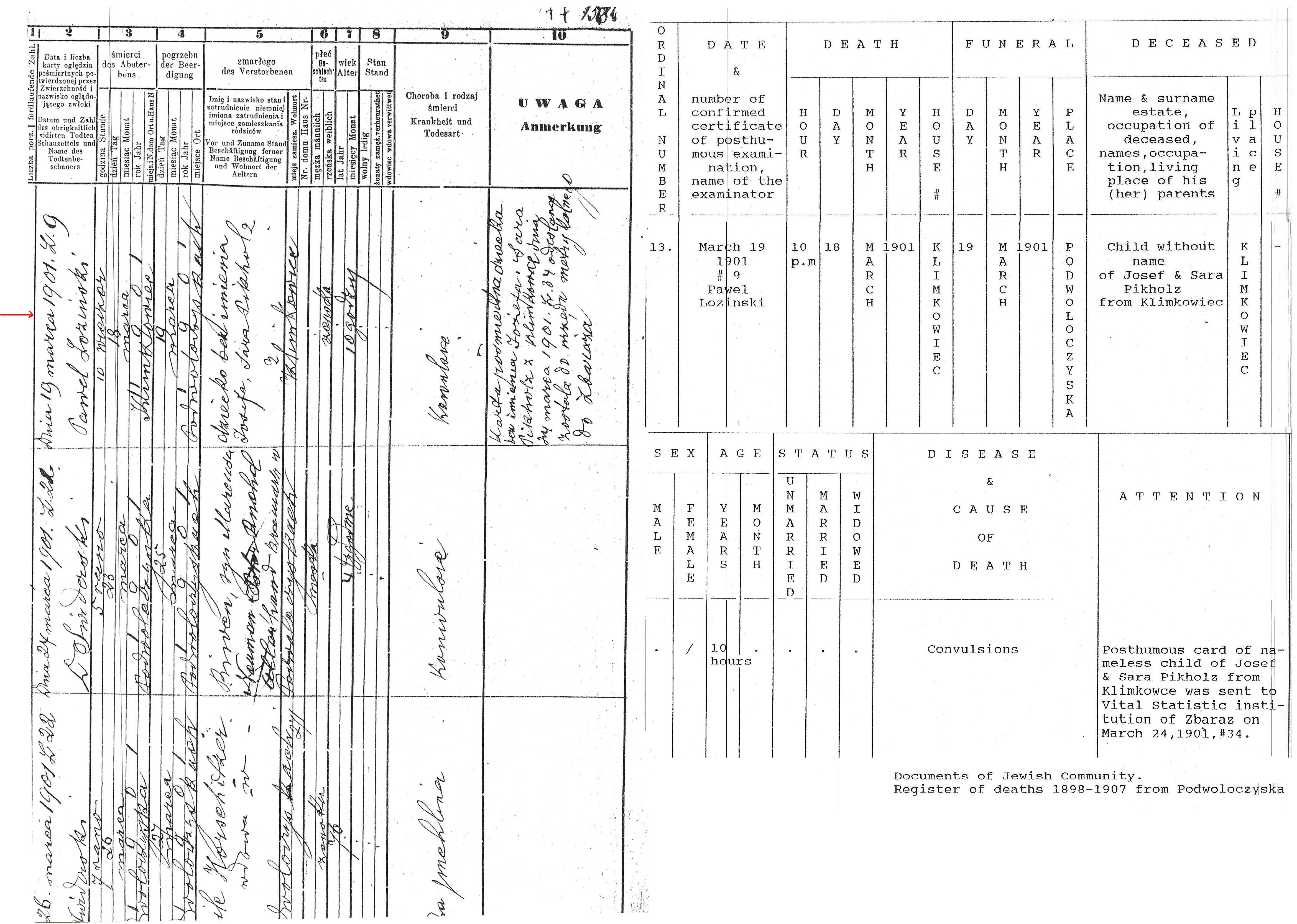 26 Oct 1906 | Kozowka 104 | Taube Pikholz | Szymon | Sara | Age 7 | Probably RITA | ||||