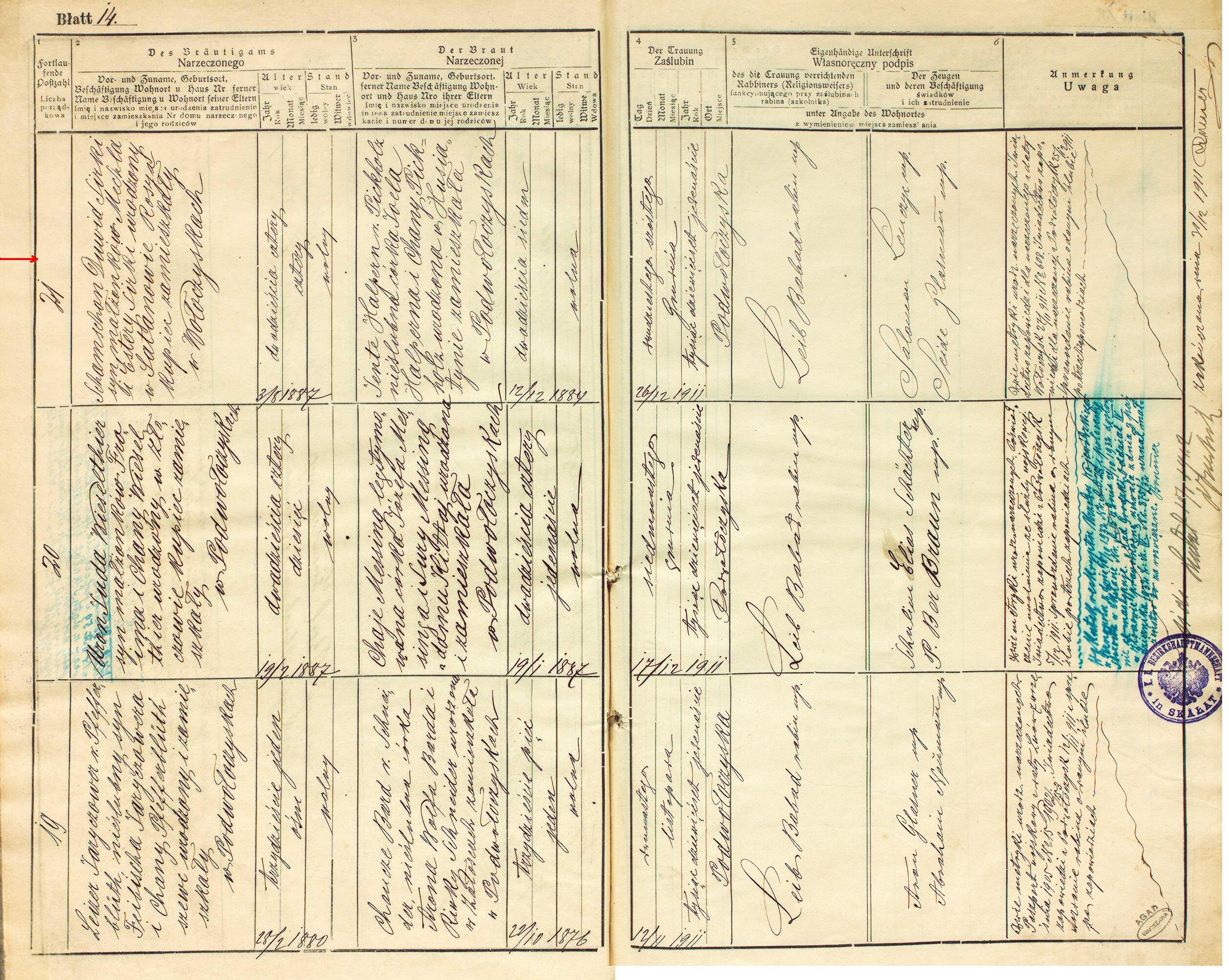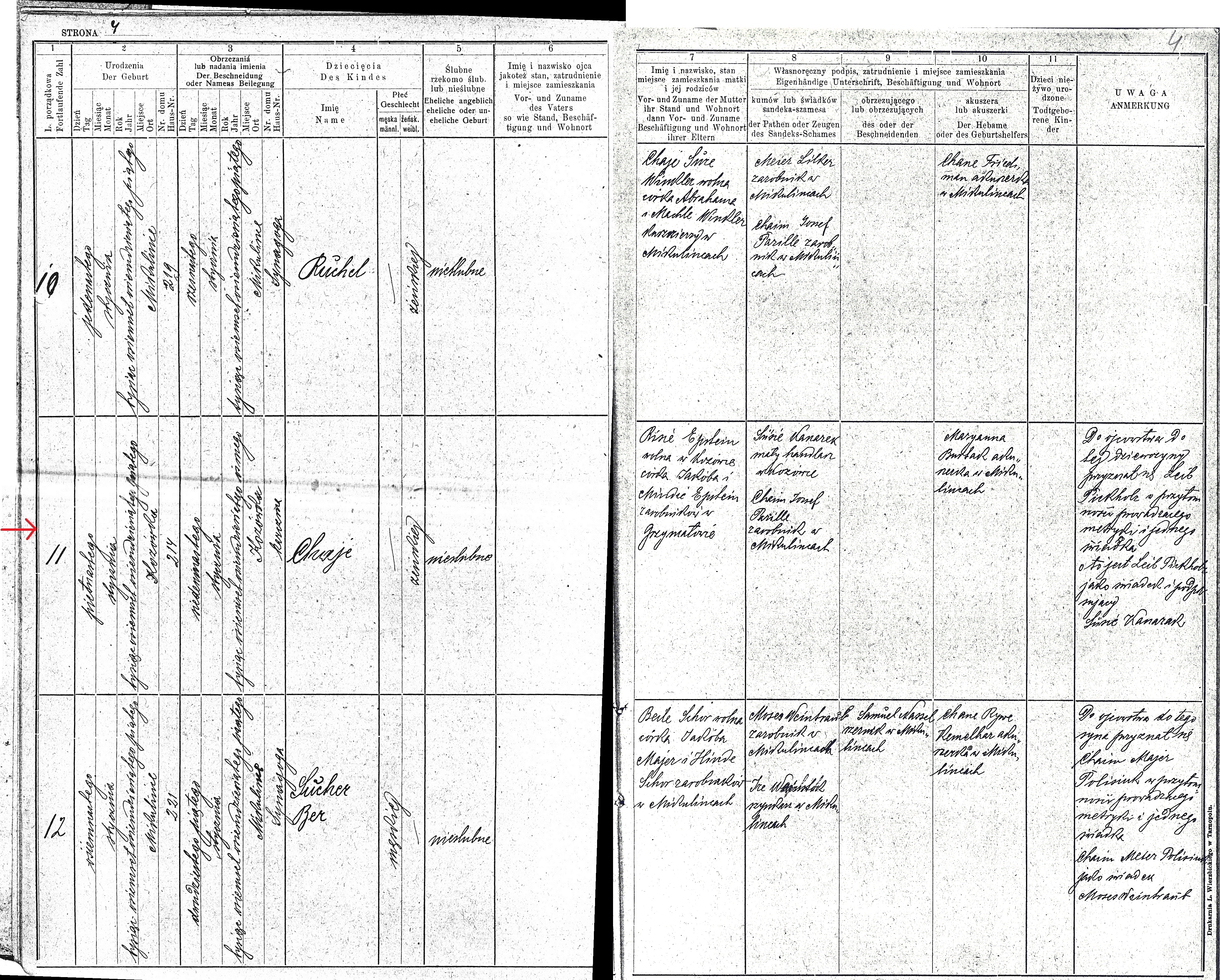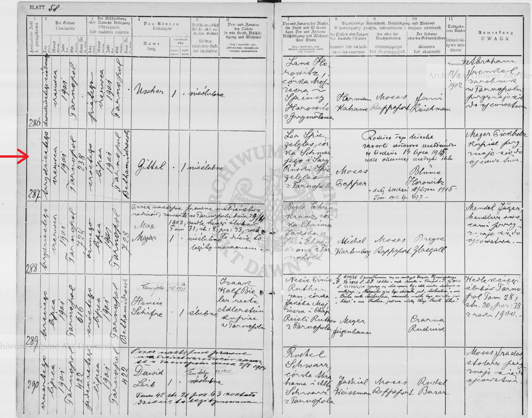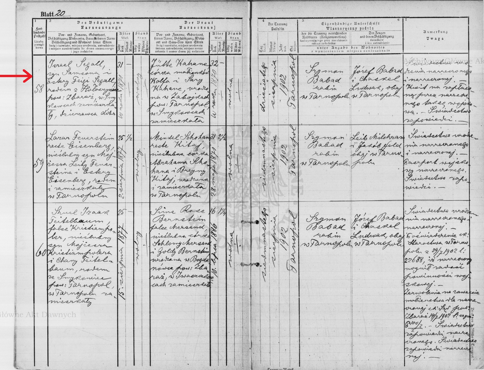 16 Jul 1904 | Scheindel Pickholz | Schaje Wolf Jorysz | Basie | Josef and Fradel Pickholz | Tarnoruda | RITA? |