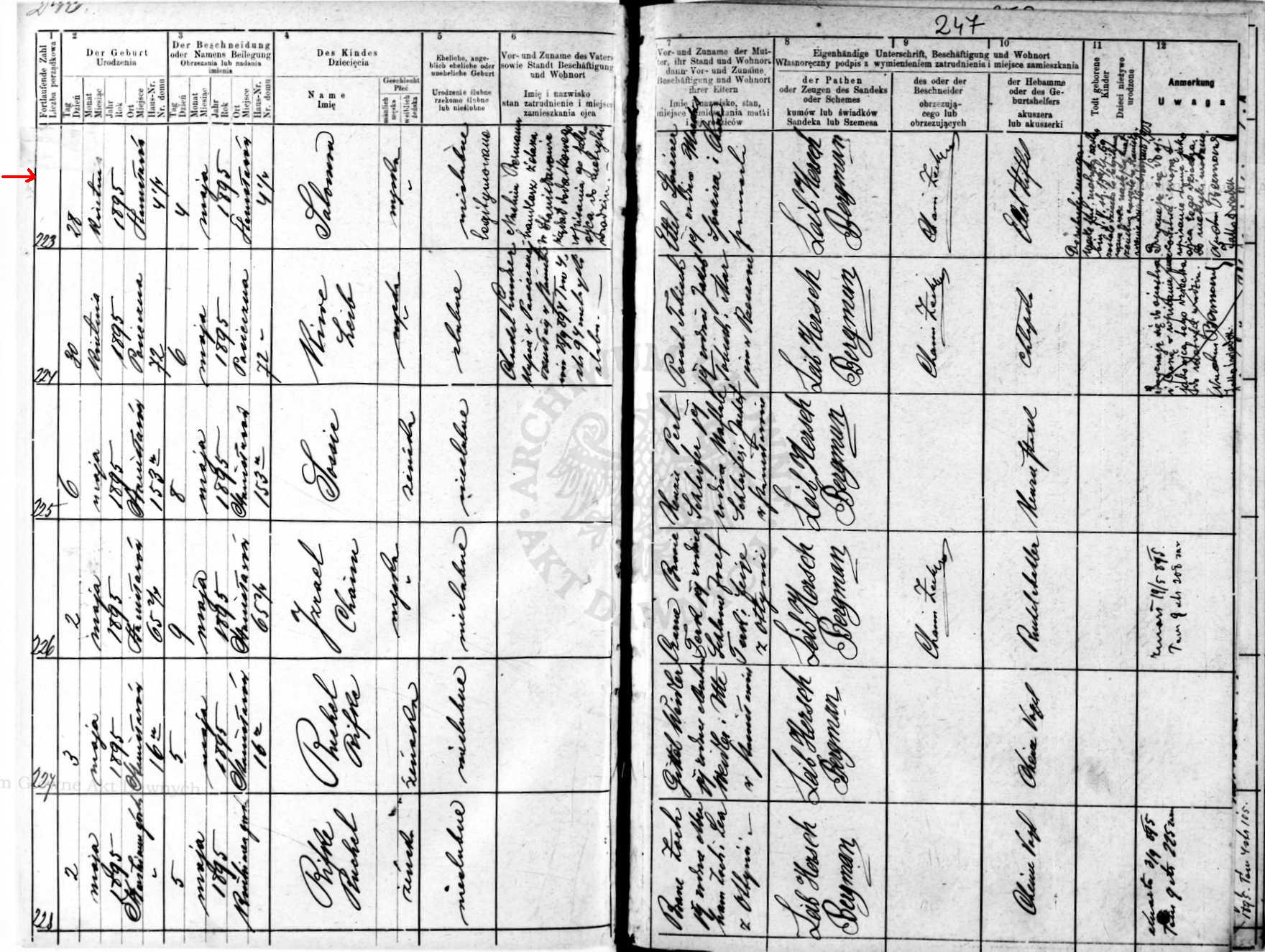 1 | Aug 1902 | Israel Segall | Sep 1871 | Samson Segall | Estery Feigi | Holoszynce | LAOR |