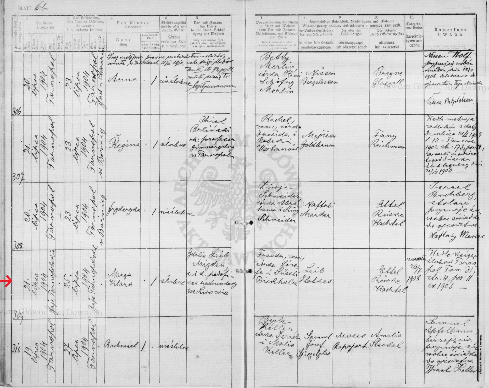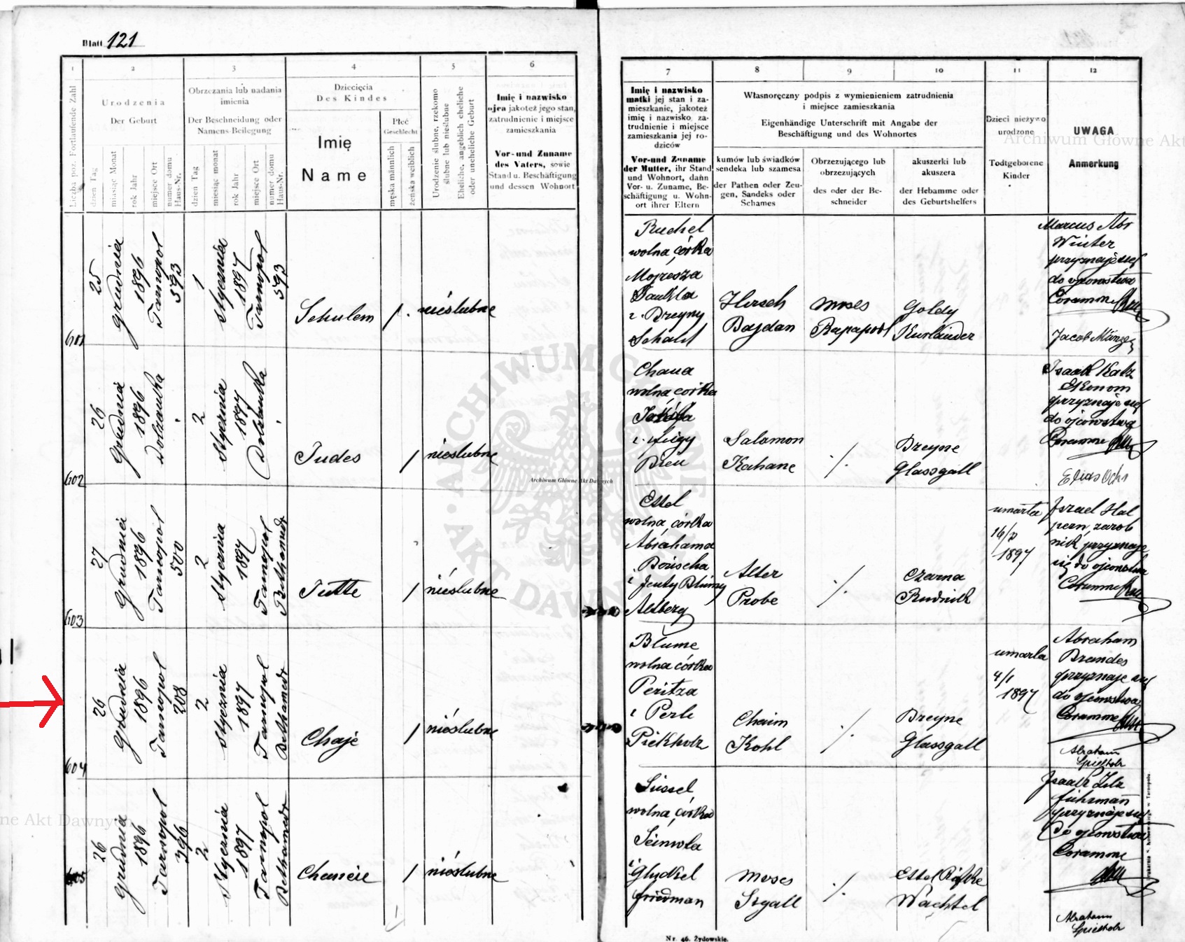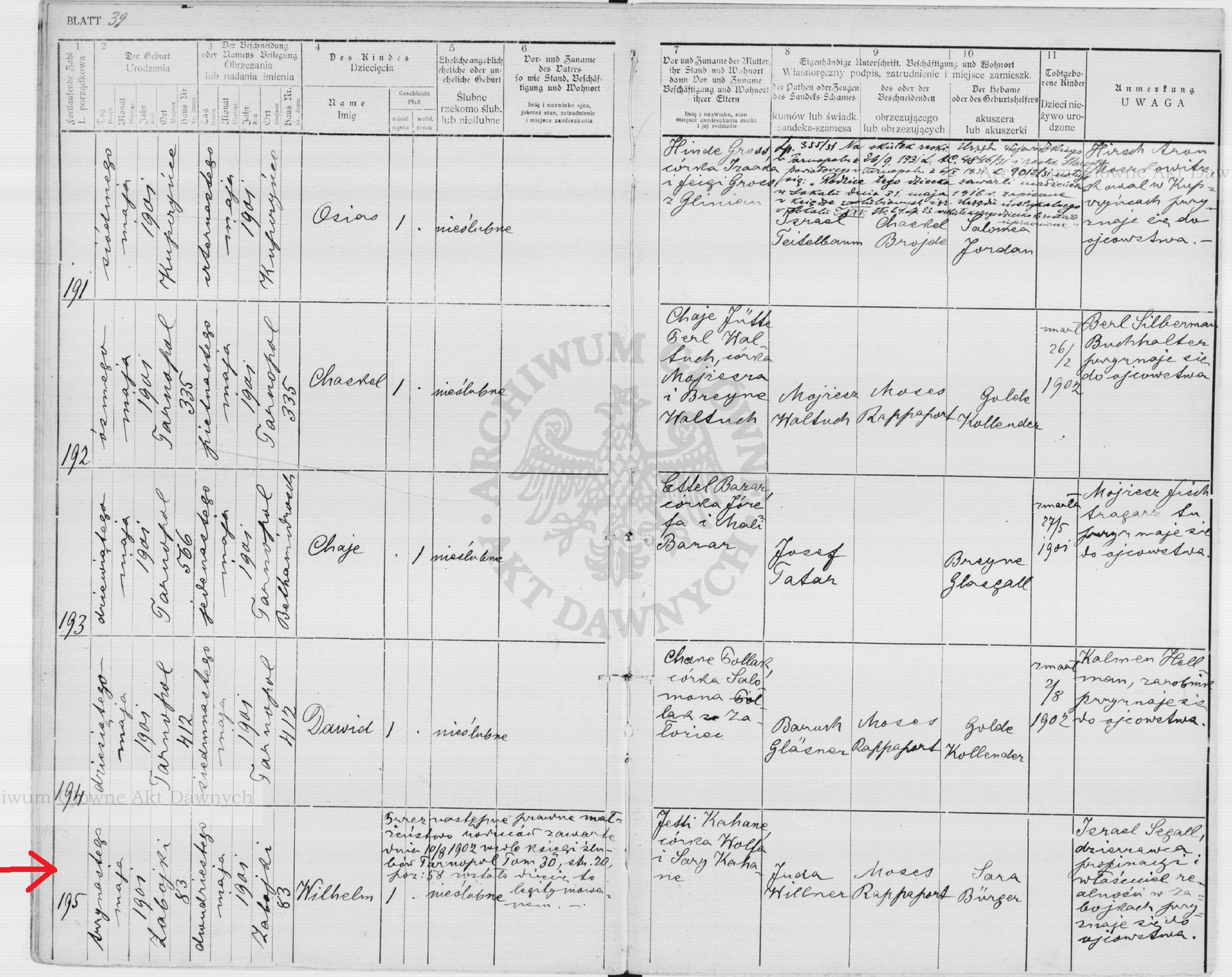 1 Dec 1904 | Gaja Wielkie | Lazar Kleinstein | Salomon Bendje | Feige Pickholz | Szymon & Breyne | LAOR | |||||