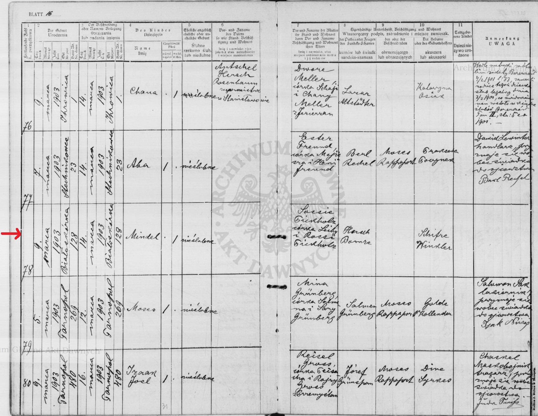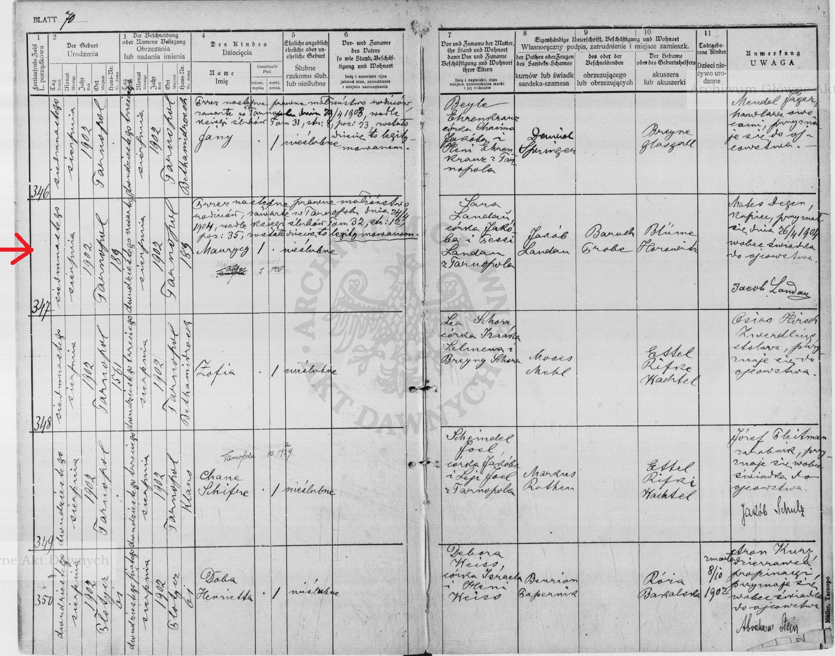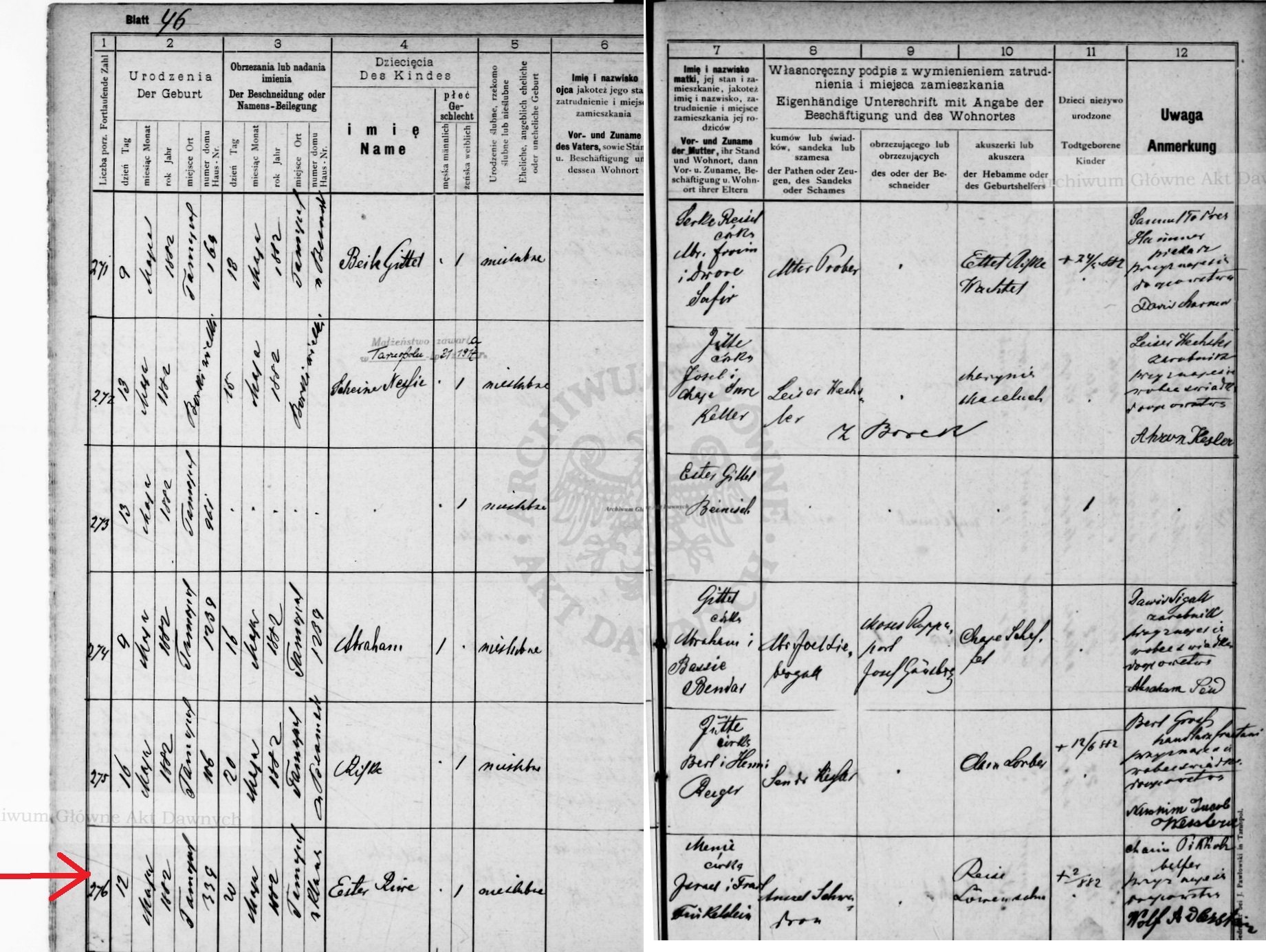 1 Dec 1904 | Gaja Wielkie | Lazar Kleinstein | Salomon Bendje | Feige Pickholz | Szymon & Breyne | LAOR | |||||