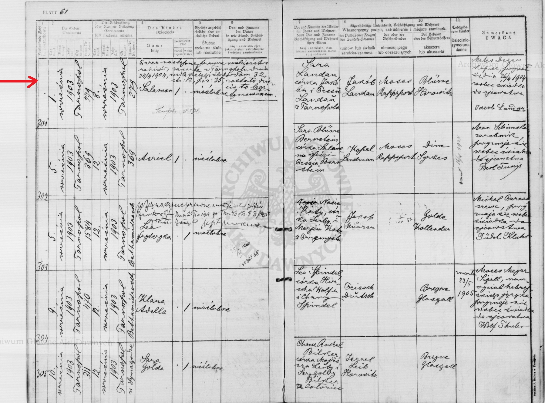 13 | 17 Aug 1902 | 189 | Maurycy Degen | Mates | Sara Landau | Jakob & Pessi Landau | Tarnopol | ELIEZER | |||