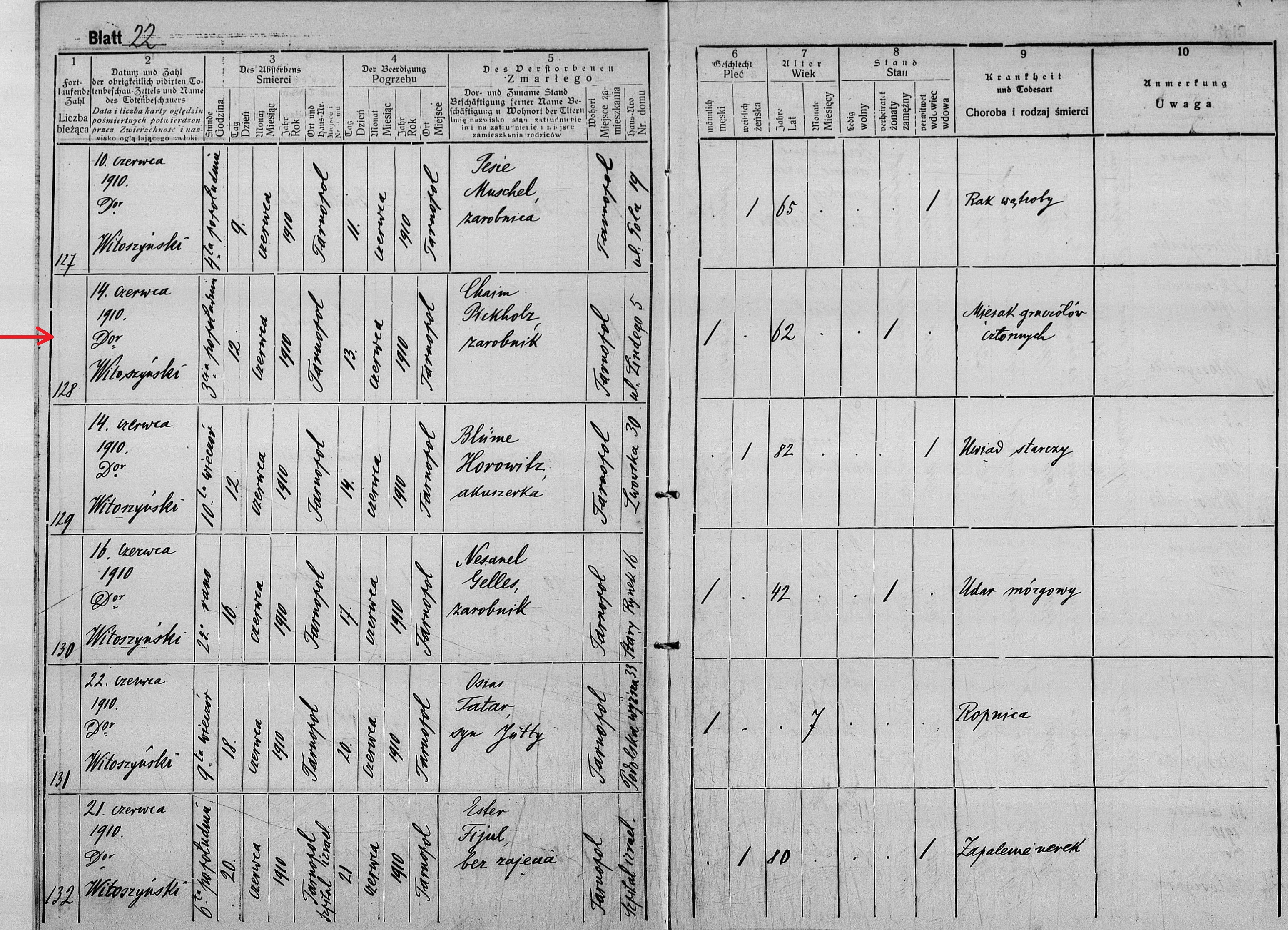 12 Jun 1910 | Tarnopol | Chaim | 62 | ELIEZER | ||||||