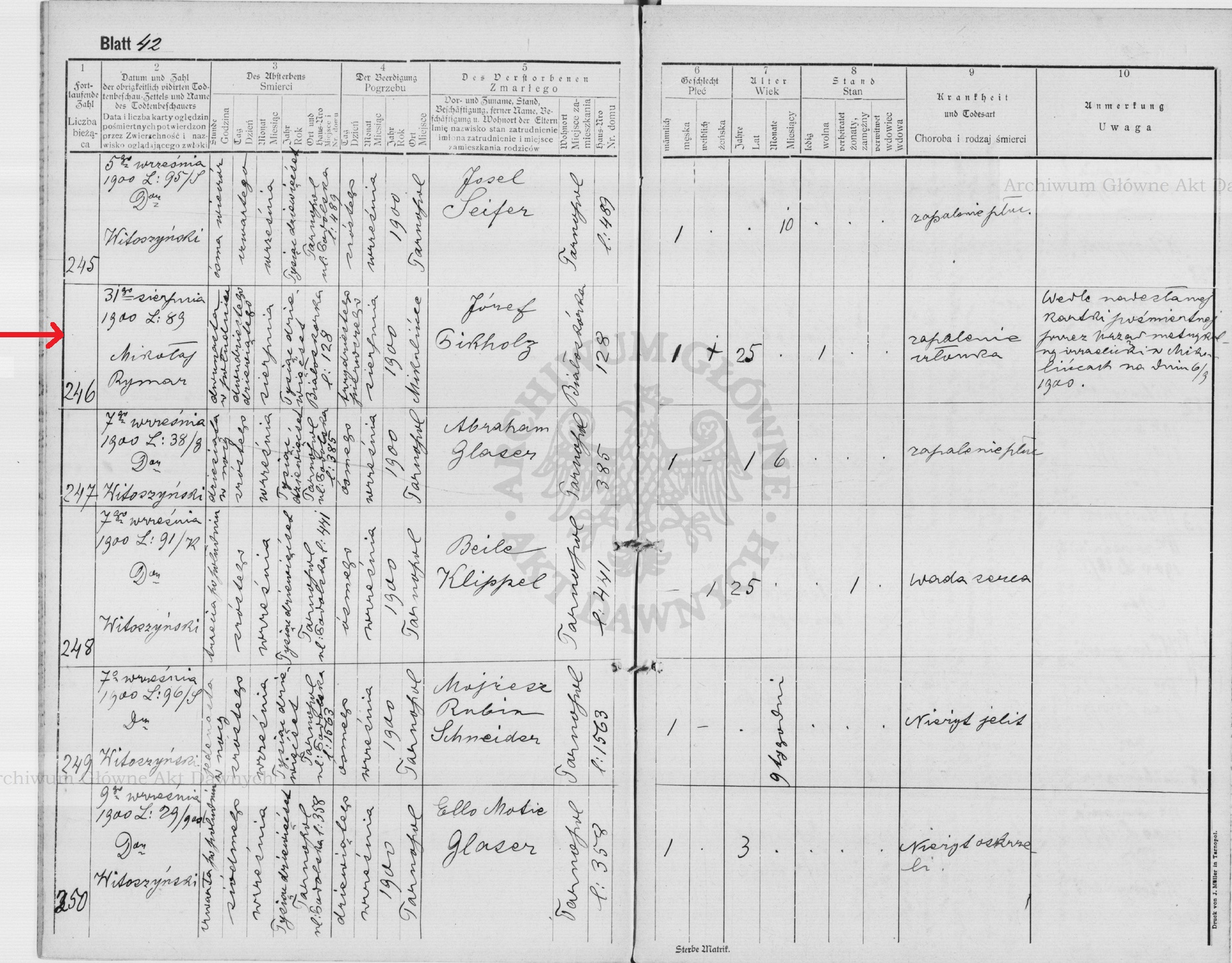 1 | 31 Aug 1900 | Bialaskorka 128 | Jozef | 25 | ||||||