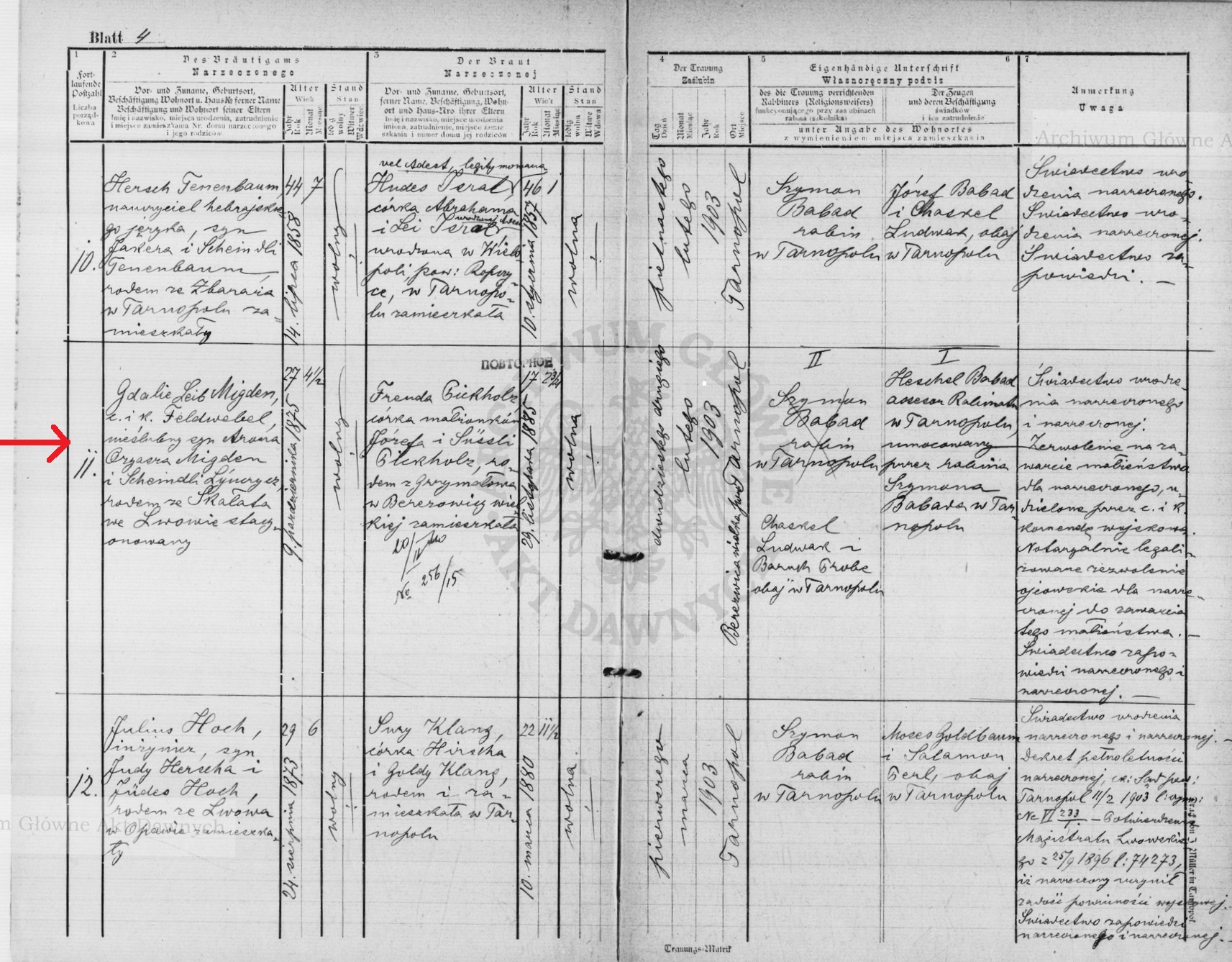 10 May 1907 | Berezowica Wielkie | Anna Migden | Gdalie Leib | Lwow | Freuda Pickholz | Josef & Sussel | ROSA | ||||