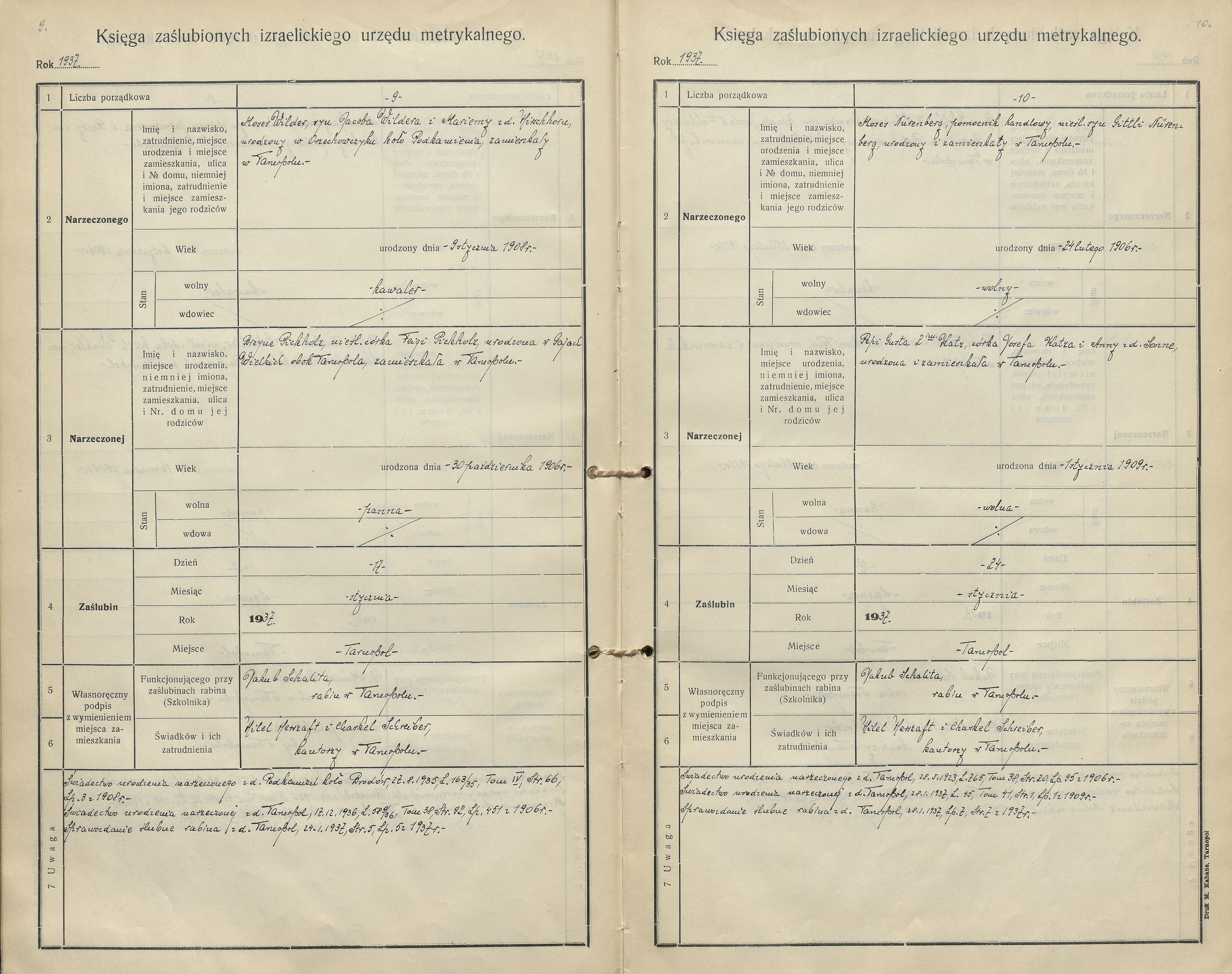 7 | 1 Mar 1936 | Josef Isak Neuman | 14 Mar 1901 | Selig Schewa | Mariem Neuman | Tarnopol | ELIEZER |