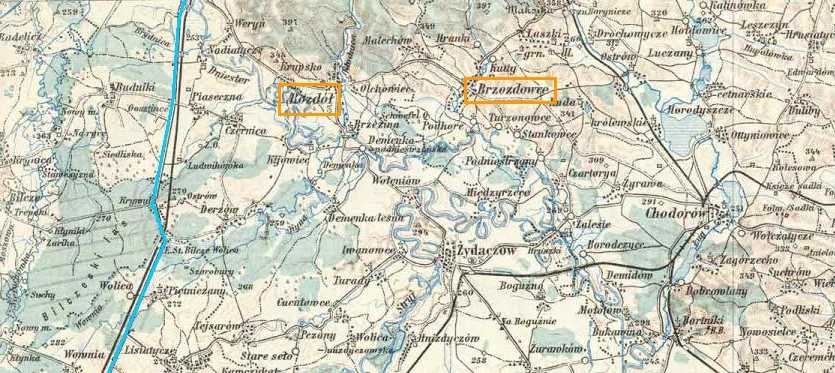 Brezdowicz are marked in orange. The Road from Lwow (Lemberg) to