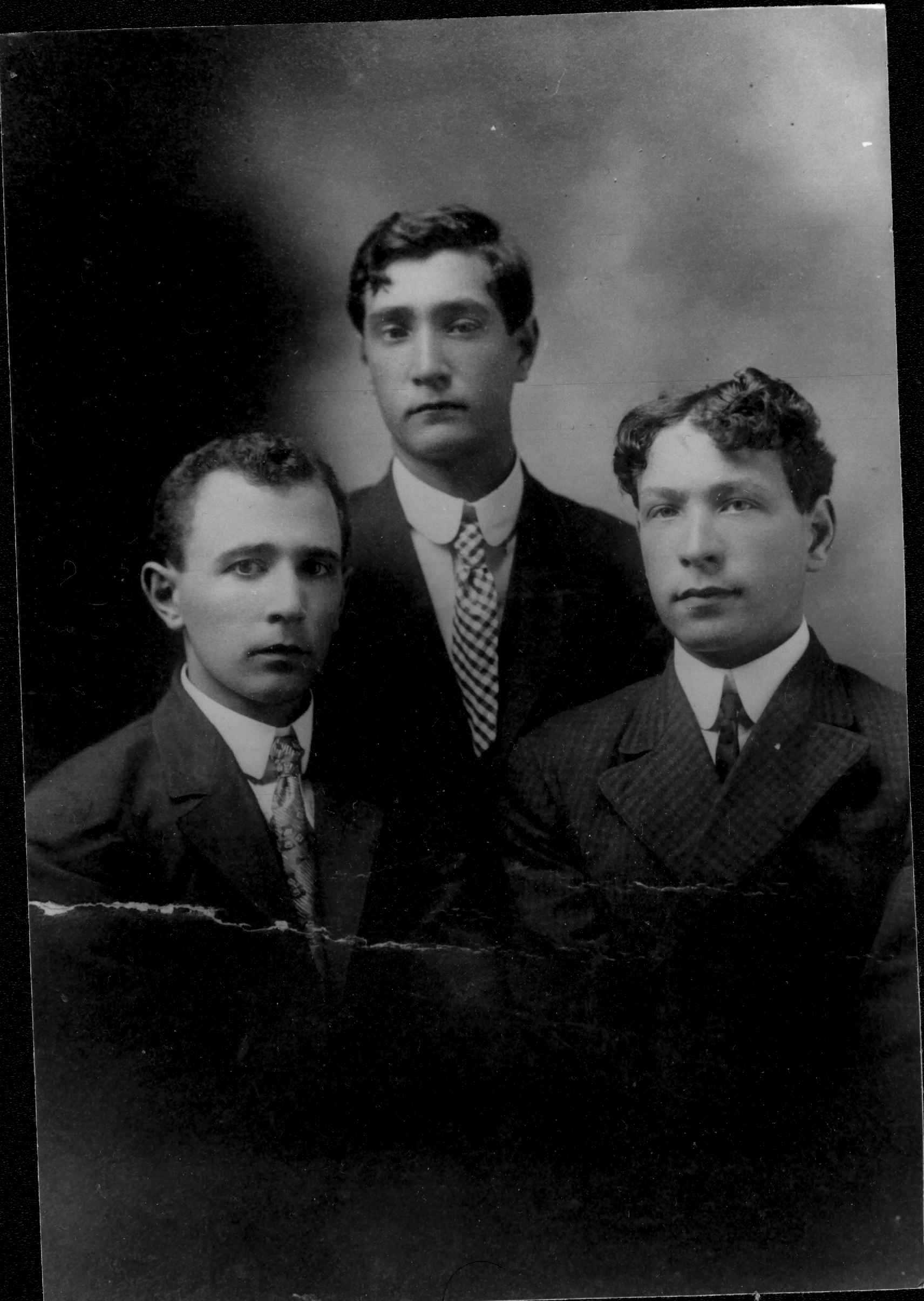 (Their father Hersch Gordon, appears below.) On the right are the cousins from Mississippi - Jake, Harry and Ezidor Gordon. I'm not sure which is which, but I think Harry is in the middle and Jake is the shortest one. The third one - who would therefore be Ezidor - looks very much like George Jaffe (son of Mary in the other photo) who died just a few months ago. Are there any resemblances between the two sets of siblings? |