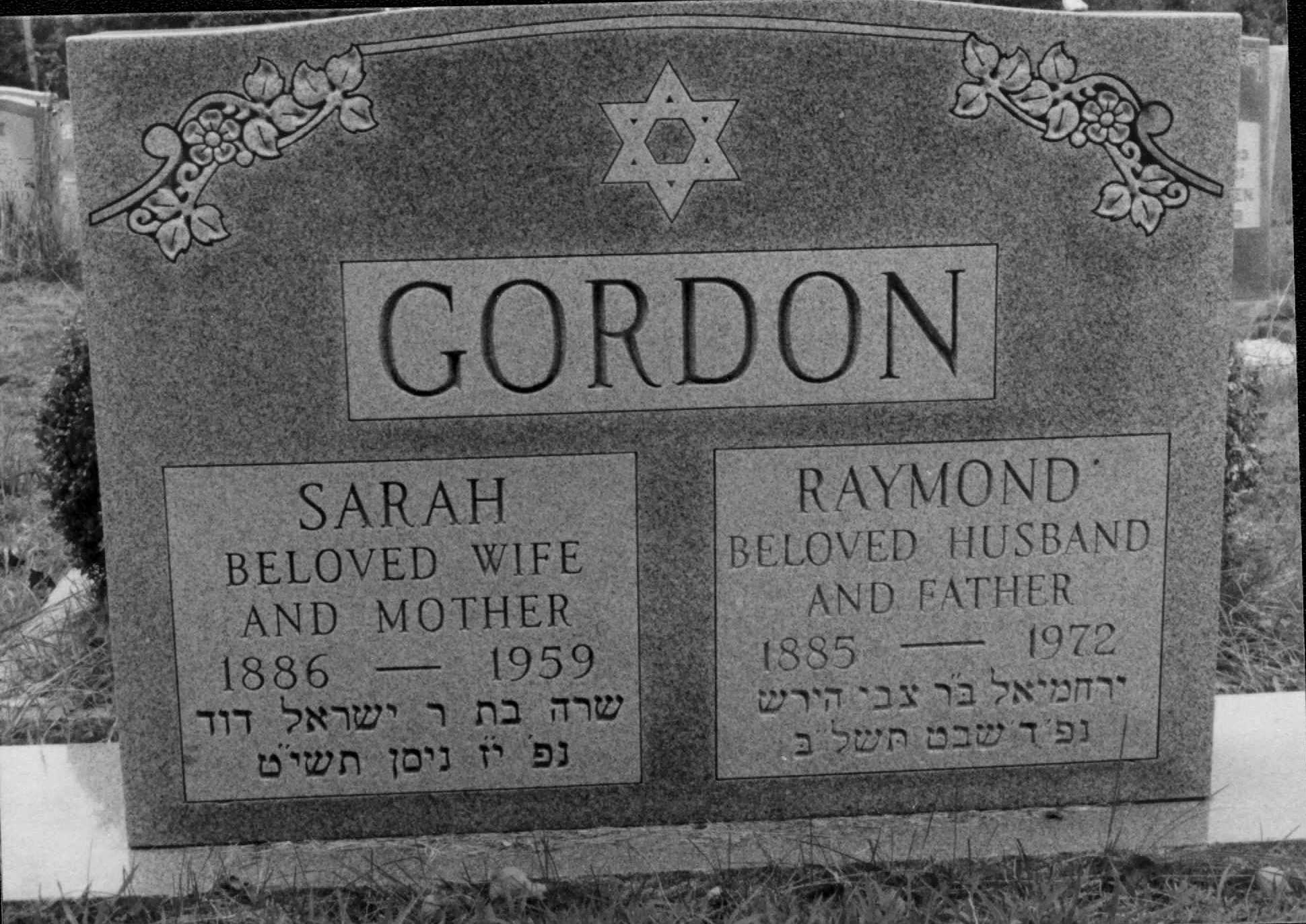 | Raymond Gordon | Yerahmiel | Zvi & Hannah | 4 Shevat | Bnai Israel, OxonHill MD | 1886-1972 | |