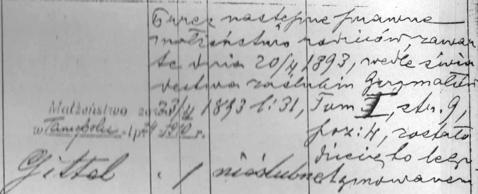 | note says. Gittel's birth (in the Tarnopol records) is in Bereszow