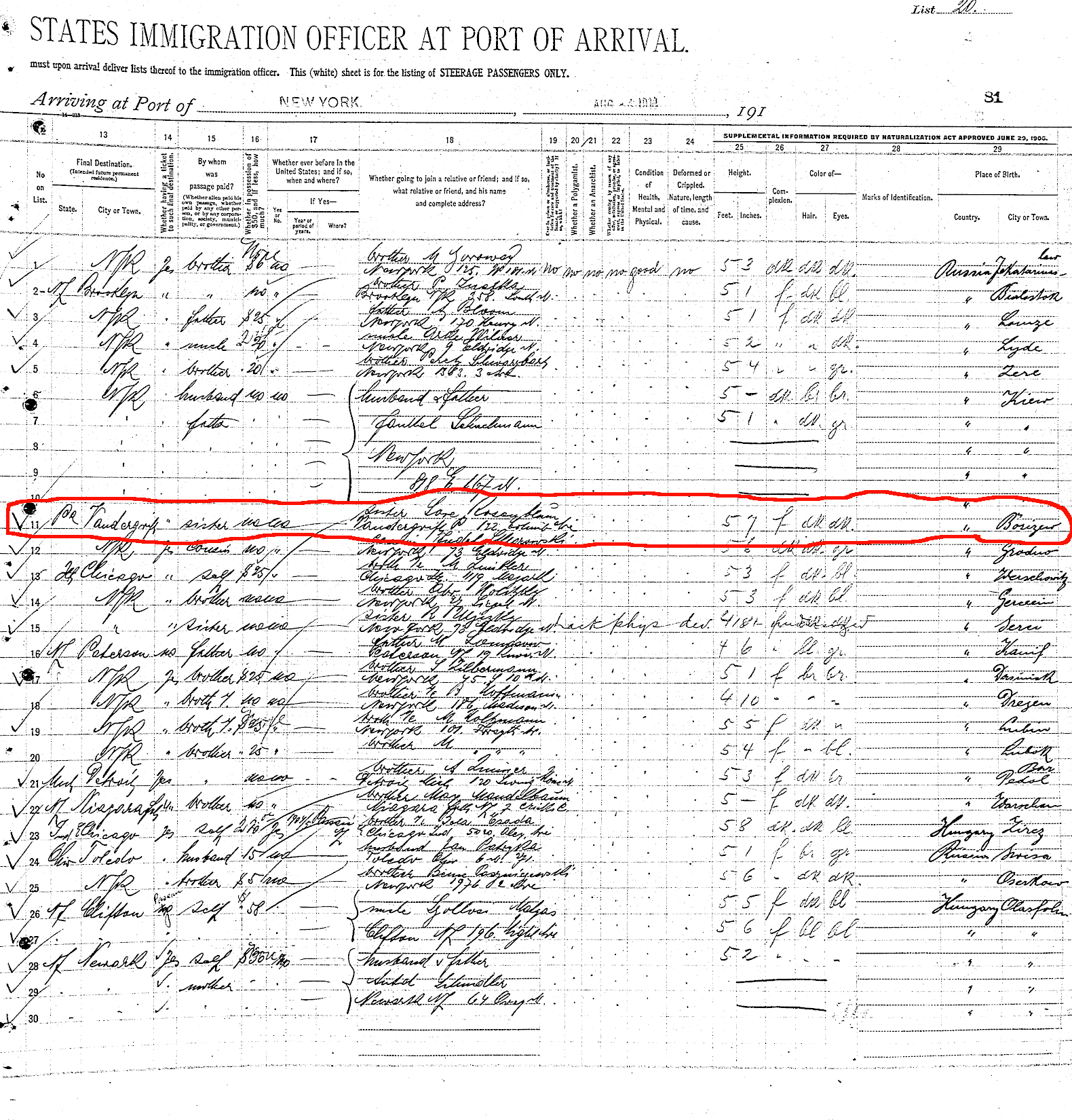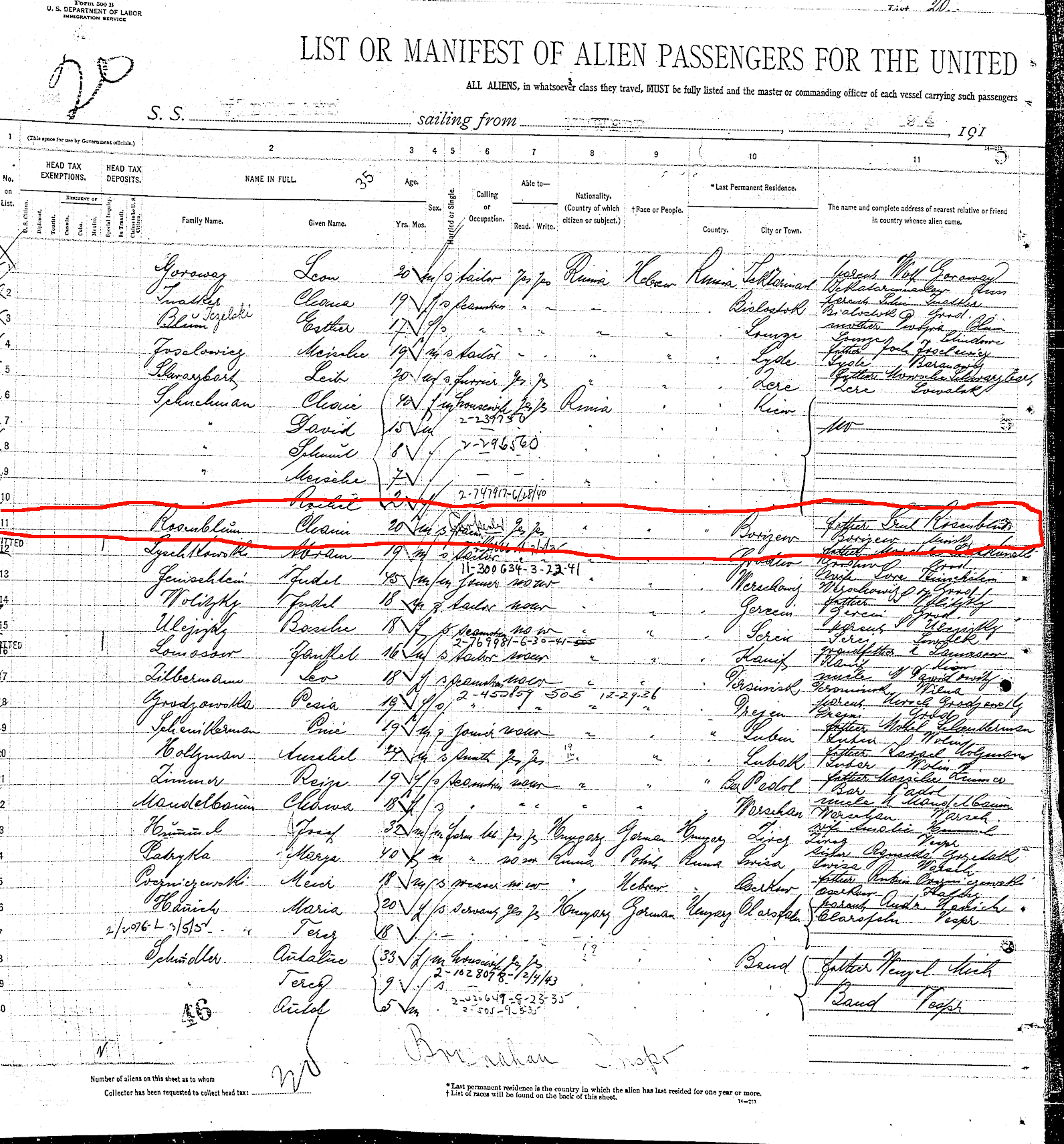 Hymen Rosenbloom enters the US - see line 11.
