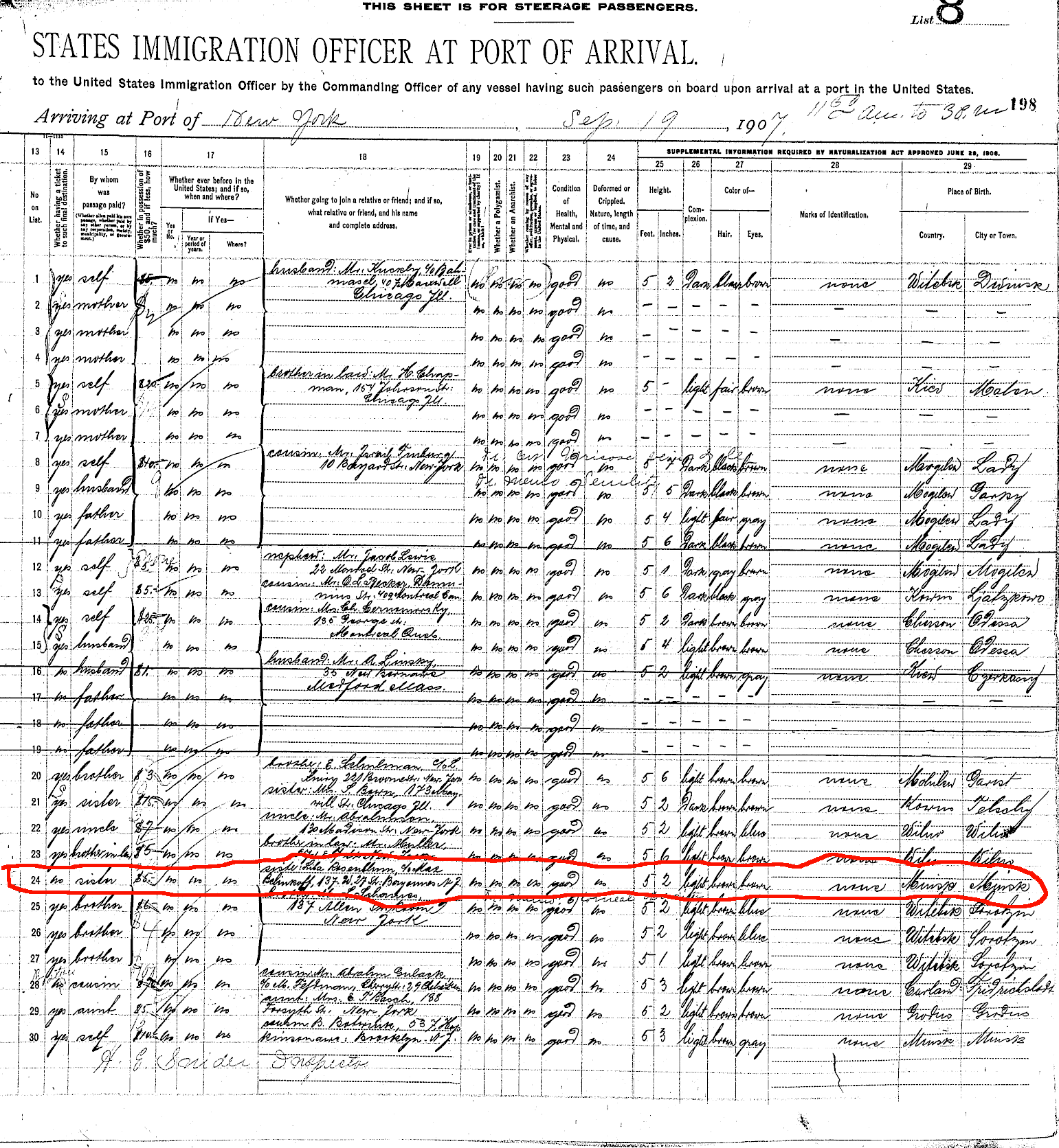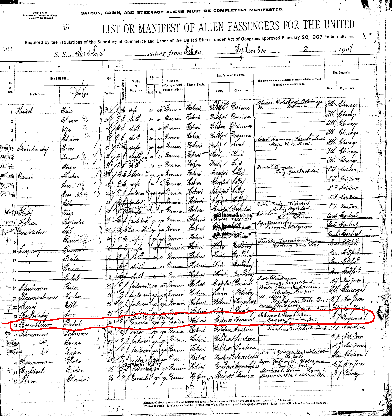 Rochel (Rose) Rosenbloom enters the US - see line 24.