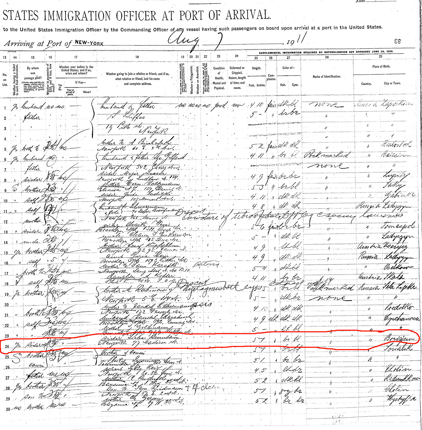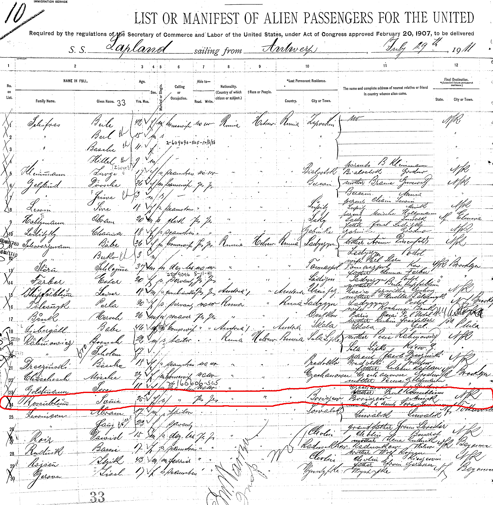 Sonie Rosenbloom enters the US - see line 24.