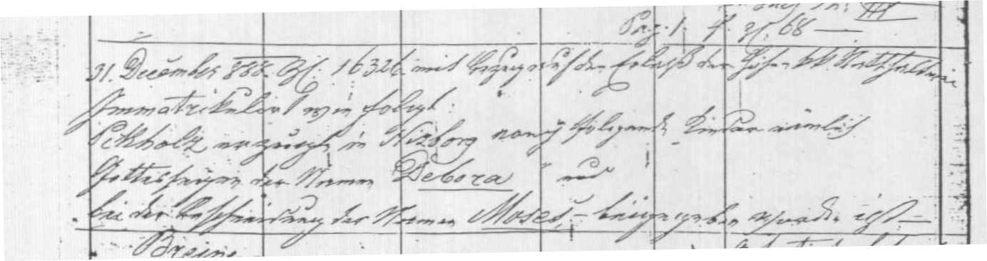 According to the JRI-Poland file (as recorded by the AGAD archives), this is a 1888 registration of the 1874 and 1876 births of Debora and Moses, to Breine, daughter of Gabriel and Ryfka Pikholz.